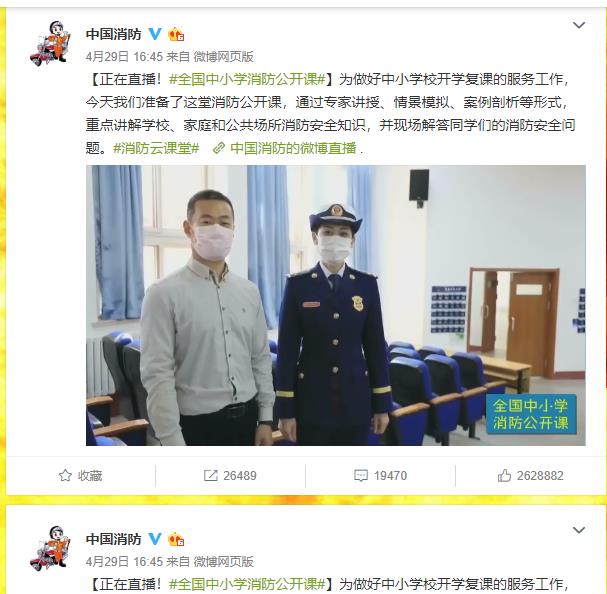 为配合做好学校开学复课的服务工作,经各方筹备,学校保卫处与青岛市消防支队、青岛市电视台联合拍摄的《全国中小学开学消防第一课》教育宣传片于4月29日下午在中国消防官方微博直播,目前观看点播量达4586万。短片中保卫处副处长严增兴与崂山消防大队副队长常虹,创设不同场景,就学校消防安全检查有关内容进行了现场讲解,重点对学校教室、实验室、学生宿舍等重点场所的消防隐患进行了查找分析,有效普及了学校消防安全常识及...