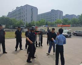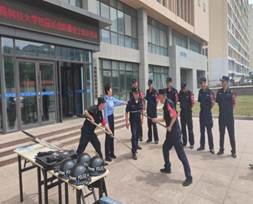 为进一步加强校园安全工作,提高反恐防暴应急能力,保卫处组织开展了反恐防暴演练活动。驻校派出所警官对学校保安人员进行擒拿、解脱基本技能的培训,现场讲解了反恐防暴器材的使用要领、注意事项以及攻防技能,同时进行了警棍盾牌、钢叉器械等操作示范。演练中,“暴徒”闯入校园,安保人员发现后立即报警并拉响警报。整个演练过程安全、有序,演练活动取得预期效果。