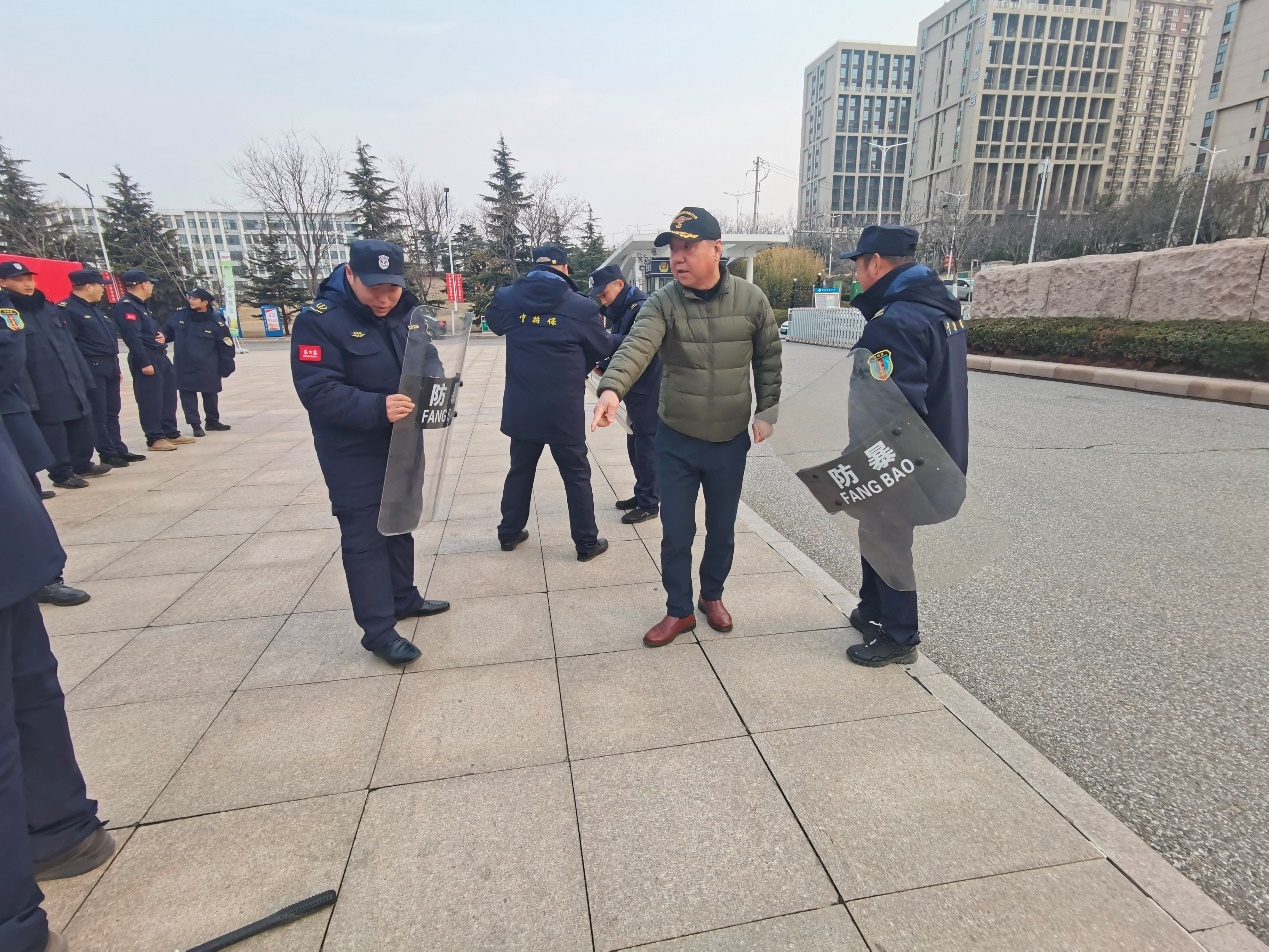 本次演练共分为两个部分,一是邀请专业人员对全体安保人员开展业务培训与宣讲;二是根据突发事件等级分两套预案有序进行安全演练。