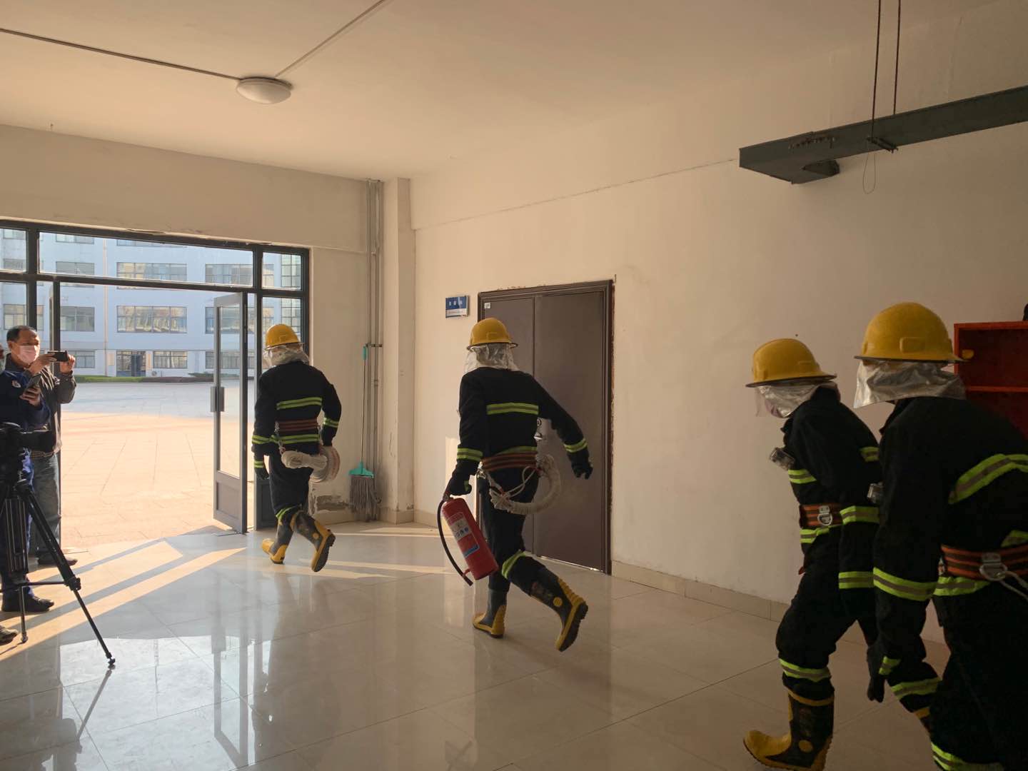 演练主要从中控室接到报警、现场核实、预案启动、情况汇报、消防应急系统启动、人员疏散、微型消防站出动、灭火战斗展开、现场交接等环节进行模拟演练拍摄,通过此次演练拍摄充分检验了我校平时训练的真实水平,进一步提高了我校灭火疏散、应急联动处置能力,同时得到了市消防支队宣传科充分肯定。