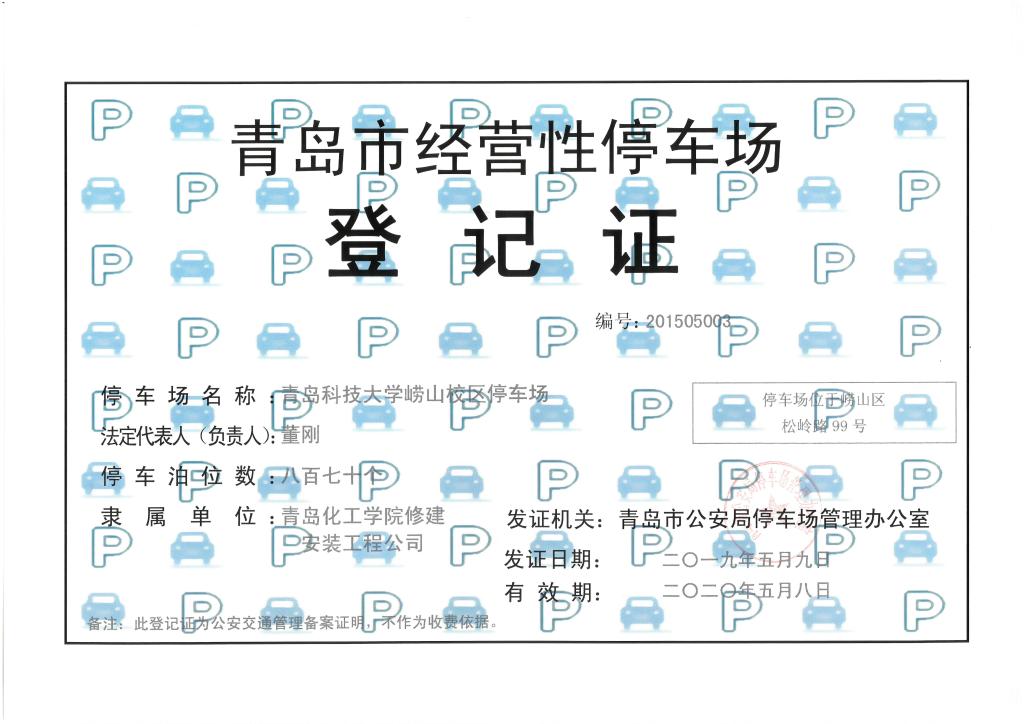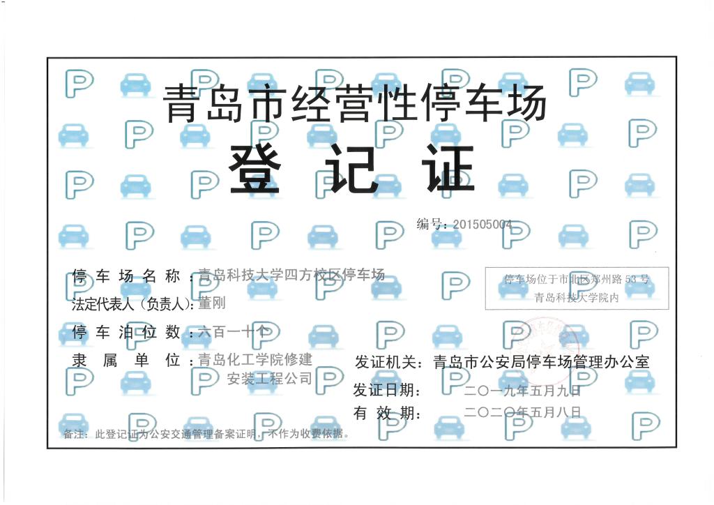 bat365在线中国官网登录入口经营性停车场登记证(2019-2020)