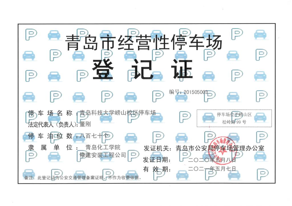 bat365在线中国官网登录入口经营性停车场登记证(2020-2021)