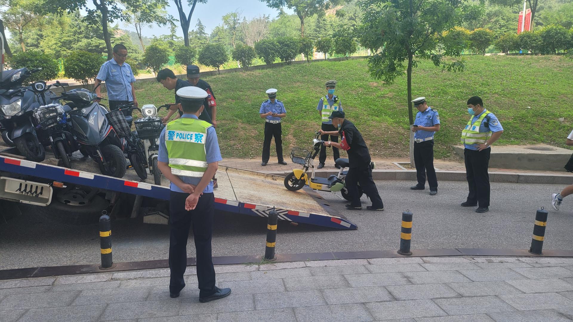 根据《中华人民共和国道路交通安全法》及学校《bat365在线中国官网登录入口校园机动车泊车收费实施细则(暂行)》、《bat365在线中国官网登录入口校园内非机动车管理暂行办法》等规定,校园内严禁汽油摩托、电动摩托及未悬挂双牌(交警牌照、学校保卫处二维码牌照)的车辆通行。为此,交警部门于2021年7月9日对崂山校区车辆进行了专项治理。