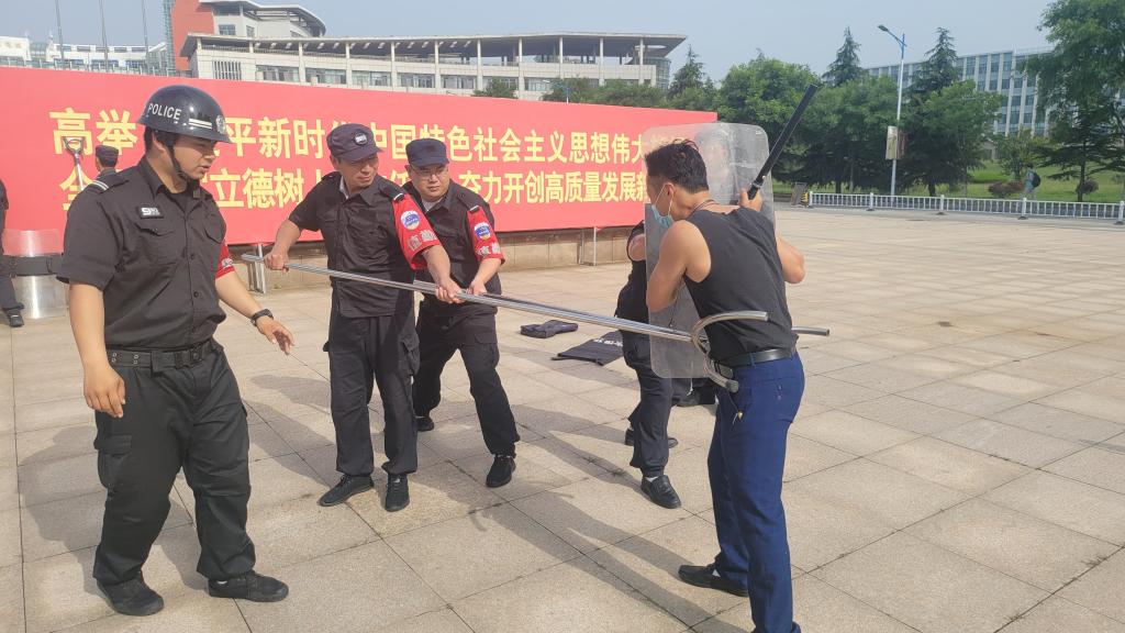 为提高应对暴恐突发事件的能力,维护校园安全稳定,6月19日,保卫处组织安保人员开展了防暴器械使用的专项培训,并进行了反恐防暴专项演练。通过此次演练,有效提高了安保队伍校园反恐防暴应急处置能力,夯实了学校安全防范基础。