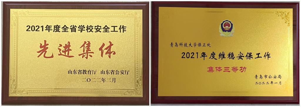 近日,从山东省教育厅、山东省公安厅发布的《关于公布2021年度全省校园安全工作先进集体和先进个人名单的通知》获悉,bat365在线中国官网登录入口被评为“2021年度全省校园安全工作先进集体”,保卫处副处长严增兴被评为“2021年度全省校园安全工作先进个人”。此外,青岛市公安局也下发文件,对2021年度全市高校文化单位先进保卫组织和先进个人进行表彰,学校保卫处荣立“2021年度维稳安保工作集体三等功”,保卫处单宝军、张良两位同志荣记个人三等功一次,余全波、仇立峰、施治宇三位同志获个人嘉奖。