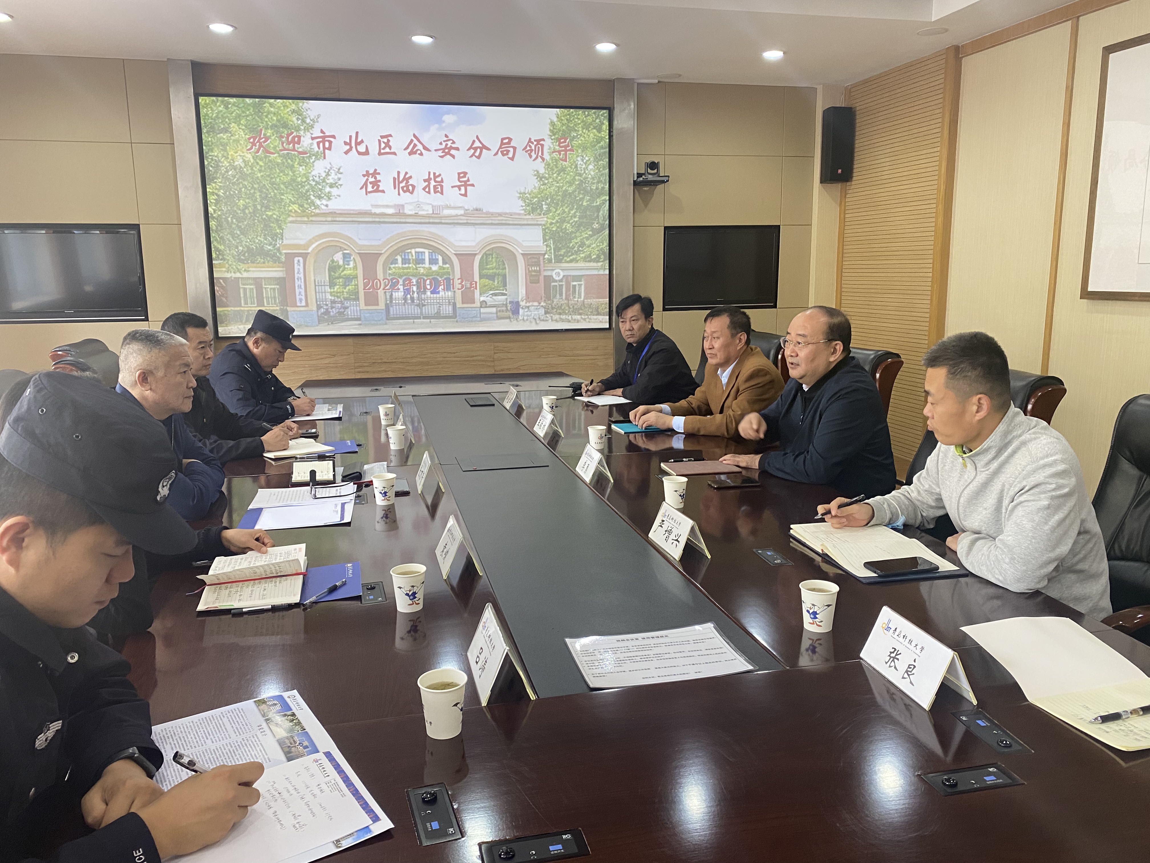 10月13日上午,市北区公安分局副局长张万青带队到我校调研安全保卫工作。党委副书记李勇出席座谈会,保卫处相关负责同志参加座谈。