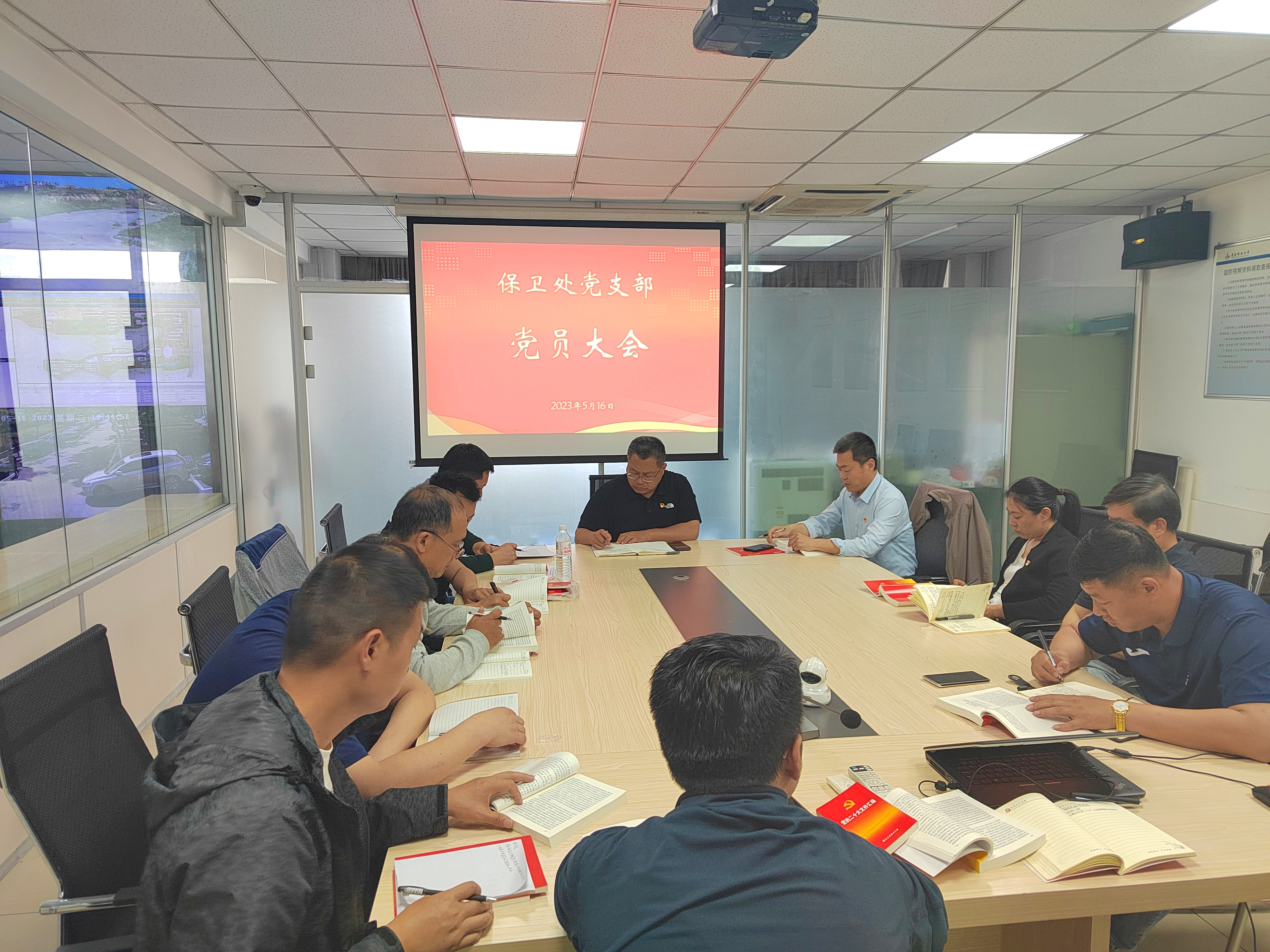 为深入开展学习贯彻习近平新时代中国特色社会主义思想主题教育精神,5月16日下午,保卫处党支部在崂山校区监控会议室召开党员大会暨支部书记讲党课活动。本次会议由支部副书记严增兴主持,全体党员参加会议。