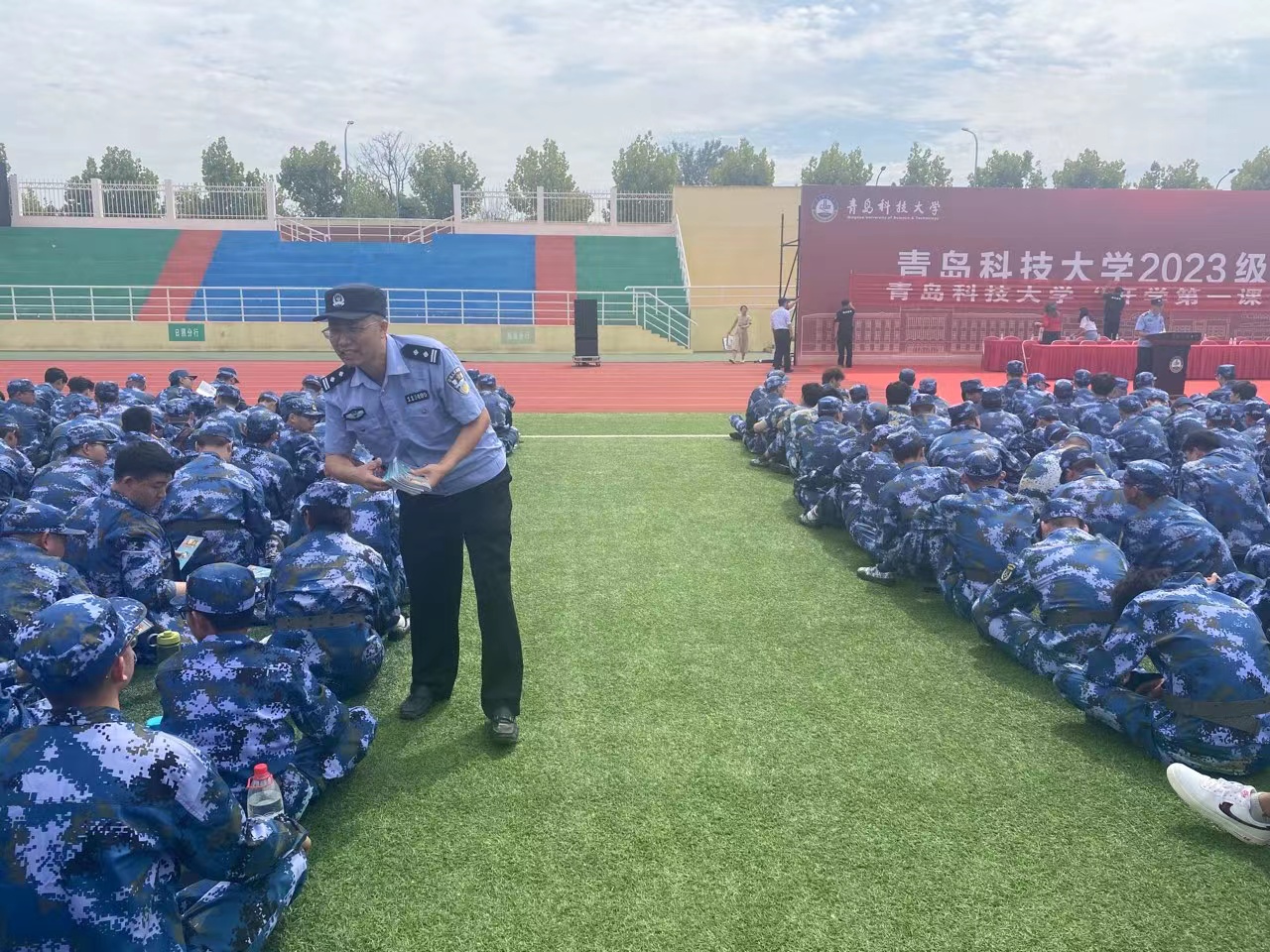9月3日,保卫处在崂山四方两校区同时举行2023年新生安全教育培训会,此次活动得到了学校驻地公安、消防部门的大力支持,中韩派出所副所长王志鹏、崂山消防救援大队孙斌参谋、洛阳路派出所宣传干警刘永,市北区消防救援大队石欣玉参谋合力给一万多新生上了一场别开生面的新生安全教育课。