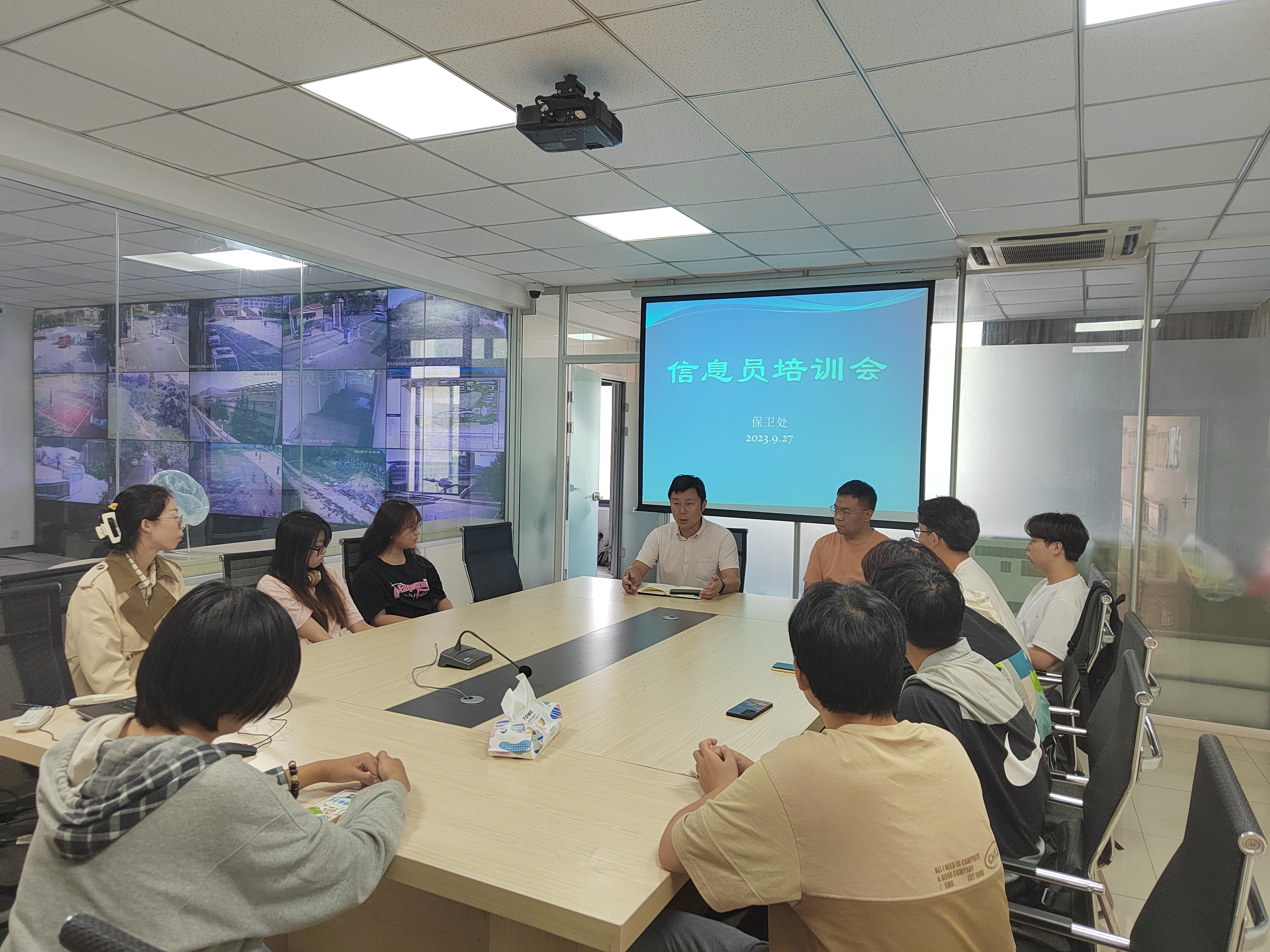 为强化校园安全管理,提高信息员综合素质,2023年9月27日,保卫处在崂山校区监控会议室召开信息员培训会,副处长张良主持会议并对全体信息员进行培训,综合信息科科长张澄参加会议。