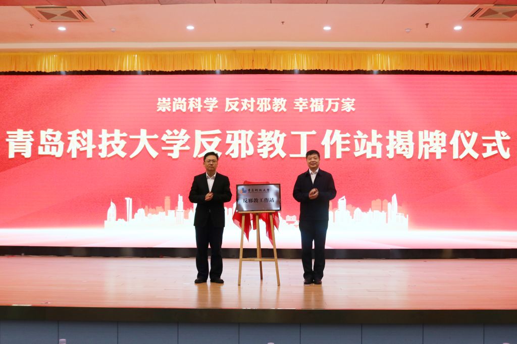 张洪坤、柳本才共同为bat365在线中国官网登录入口反邪教工作站揭牌。反邪教志愿者宣读了反邪教倡议书,青岛市科协向区市和高校代表赠送了《反邪教知识读本》,与会全体人员共同观看了由青岛反邪教协会指导制作的大学生反邪教微视频《迷失》。