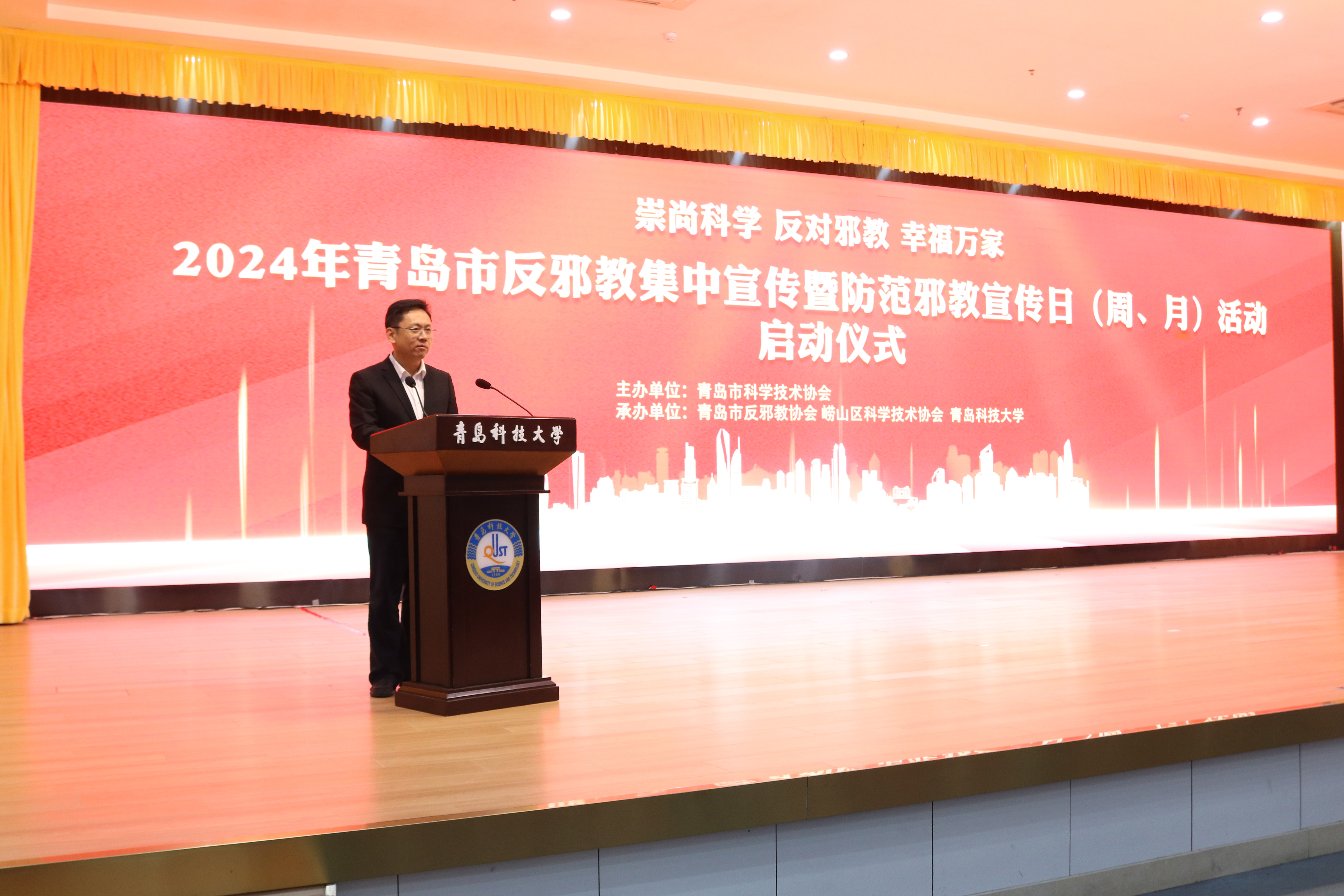 仪式上,张洪坤表示,全校师生要充分认识到反邪教工作的重要性,积极参与到反邪教的各项活动中来,各部门、各学院要积极配合,形成合力,确保宣传活动的深入开展,要利用校园网、微信公众号等多种渠道,扩大活动的影响力和覆盖面,共同维护校园和谐稳定。青岛市科协党组成员、副主席柳本才表示,各级反邪教协会组织要结合实际,广泛动员,创新形式,精心组织,持续提升反邪教警示宣传教育的影响力。
