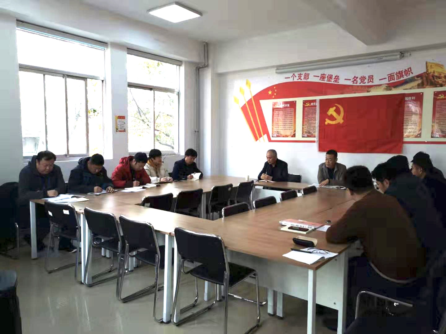 1121日下午,保卫处党支部组织全体党员在崂山校区党员学习室开展述学教育,集中学习中国共产党第十九届中央委员会第四次全体会议公告,学习教育由党支部书记严增兴主持。