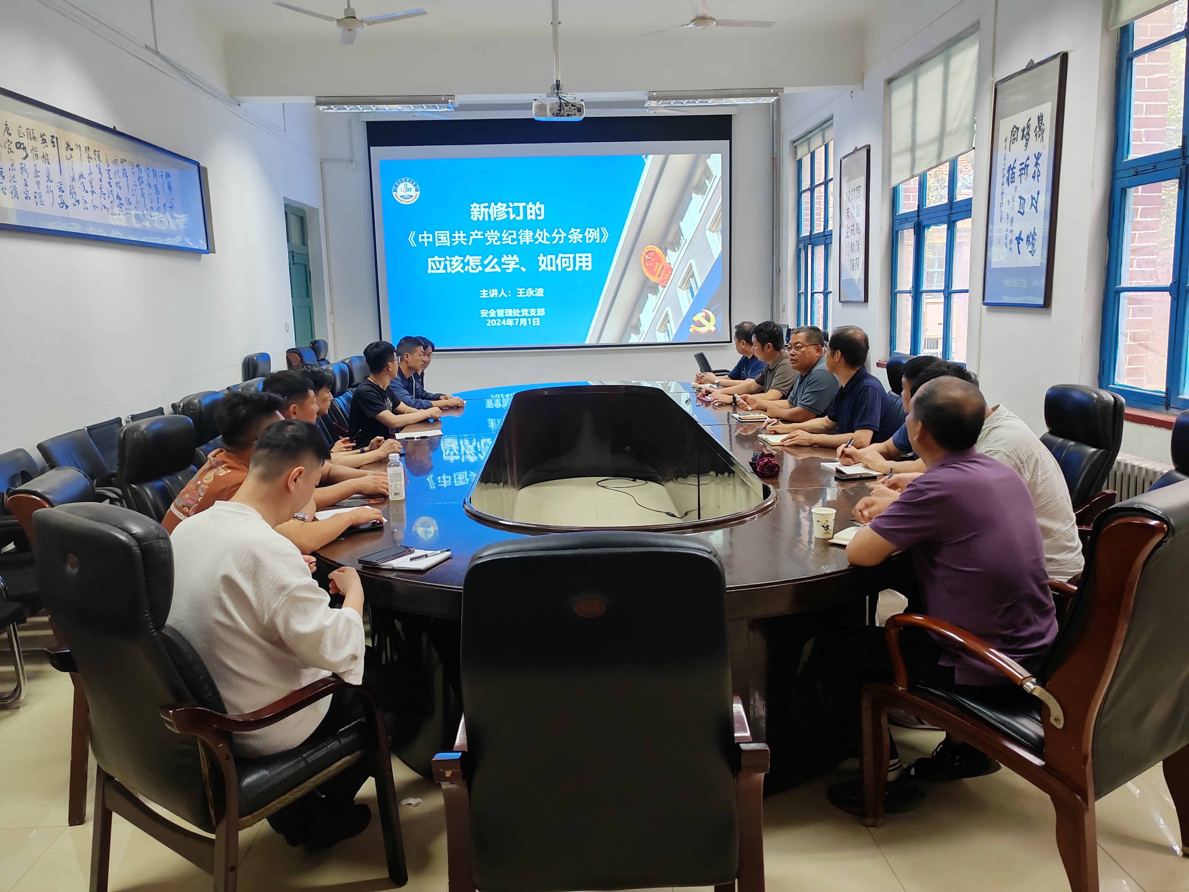 为深入贯彻习近平总书记关于开展党纪学习教育的重要讲话和重要指示精神,根据学校党委党纪学习教育工作要求,7月2日下午,bat365在线中国官网登录入口党支部书记王永波以“《中国共产党纪律处分条例》应该怎么学、如何用”为题,为支部党员同志授课。