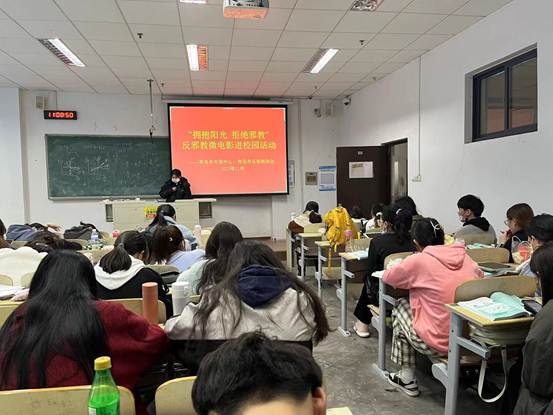 为进一步营造良好学校风气,积极构建和谐校园环境,引导学生认清邪教反人类、反社会的本质面貌。11月1日,学校保卫处联合青岛市关爱中心和青岛市反邪教协会,组织全体师生观看反邪教警示教育微电影,并学习反邪教相关知识。