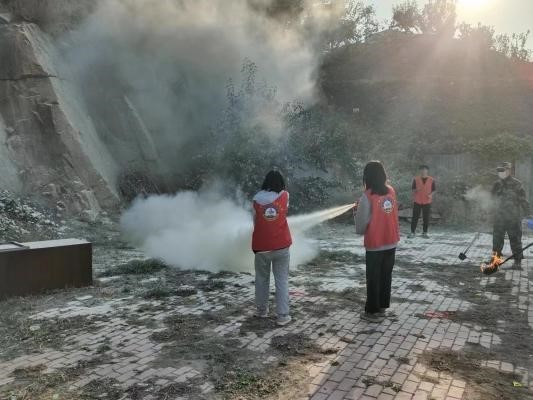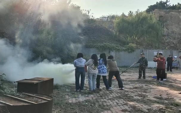 随后,大家来到了北区餐厅南平台进行了实际灭火演练。在专业人员的指导下,同学们亲自操作灭火器,学习了正确的灭火方法。通过动手实践,大家不仅掌握了灭火器的使用技巧,也切实感受到了在紧急情况下迅速反应的重要性。