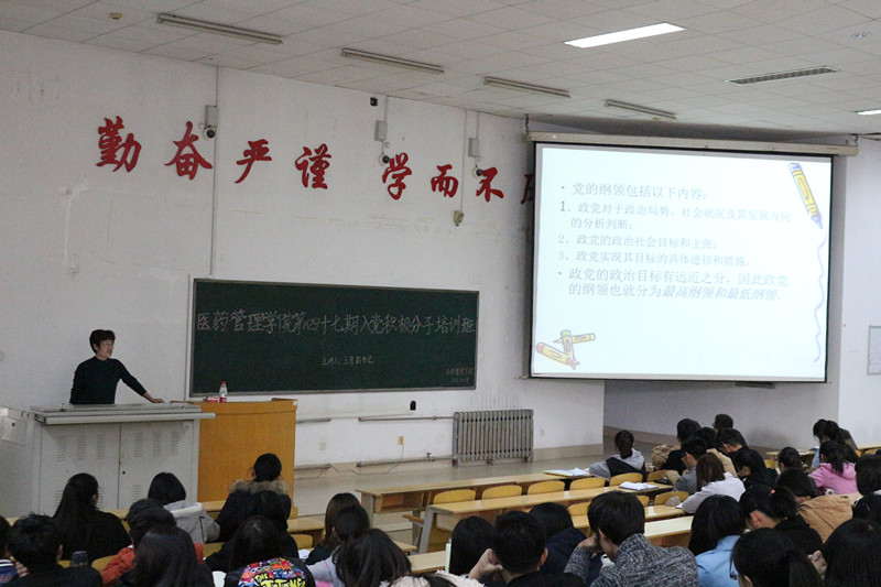为学习贯彻落实党的十八届六中全会精神,进一步加强基层党组织建设,根据泰山医学院党校的工作安排,vwin德赢ac米兰官方网党委于10月29日在教学南楼C2024教室举办了第四十七期入党积极分子培训班,对200余名入党积极分子进行了集中培训。学院党委书记张峰、副书记王彦及学生支部书记分别进行授课。 首先,学院党委书记张峰用慷慨的陈词对全体学员作了思想动员讲话。张峰要求入党积极分子学习态度要端正,勤思苦学,维持良好的学习秩序。通过培训达到能够端正入党动机,对党的理论知识理解吃透,政治上的成熟源于理论上的成熟,为下一步组织的培养教育和个人在同学们中发挥先锋模范作用打下良好基础。 培训班上,张峰书记主要从党的性质以及大学生党员近年的发展状况等方面做了深刻、生动的讲解。张峰书记结合党的十八届六中全会公报和全会审议通过的《关于新形势下党内政治生活的若干准则》和《中国共产党党内监督条例》,详细解读了党的十八届六中全会精神,并深刻解读了社会主义核心价值观和八荣八耻。随后,学院党委副书记王彦主要从党的纲领和宗旨进行讲解。她指出,党的最高纲领是实现共产主义;党的宗旨是全心全意为人民服务;党的宗旨和群众路线,强调了党性来源于党的宗旨,内化于心,外化于行。此外,周晓芳老师对党的组织原则和纪律进行了阐述,胡华秀老师专门为学员解读了“推荐优秀团员做党员发展对象”工作程序。 通过此次培训,学员们对中国共产党的发展历史和党的基本知识有了更加清晰的了解和掌握,提高了对党的认识,在思想上得到升华,从内心深处感受到中国共产党的伟大和作为一名共产党员的光荣,端正了入党动机,也更加坚定了自己成为一名合格的共产党员的信念。同学们纷纷表示,以后要树立正确的世界观、人生观和价值观,勤奋学习,积极进取,以实际行动争取早日加入党组织。