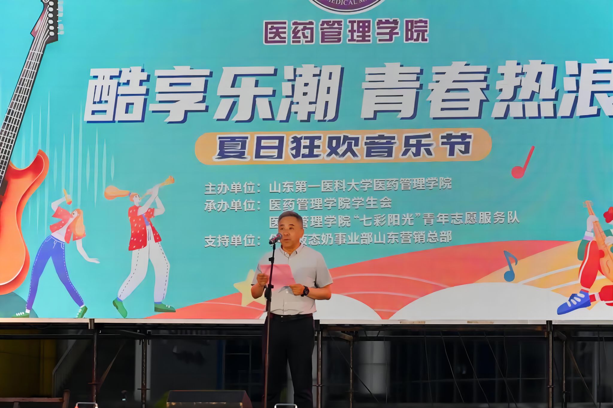 为丰富校园文化生活,展现山一大学子青春风采,5月30日,vwin德赢ac米兰官方网举办“酷享乐潮,青春热浪”夏日狂欢音乐节。2000余师生齐聚文源广场,以音乐为媒、以星月为伴,共享视听盛宴。校(院)党委委员、副校(院)长王鹏程出席活动。