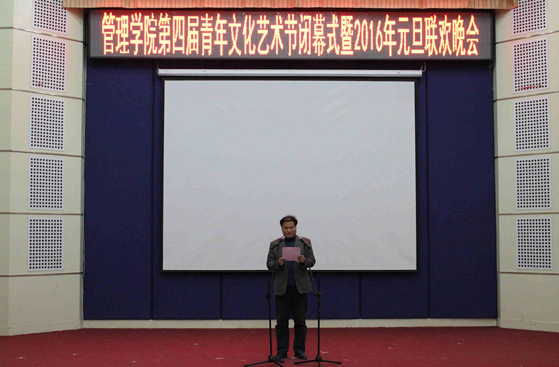 闭幕式晚会在激情四射的舞蹈《MY MY》中拉开帷幕,随后vwin德赢ac米兰官方网院长许彦彬发表了讲话,他肯定了此次晚会的重要意义,总结了管理学院在2015年取得的一系列成绩,同时展望2016年, 祝愿vwin德赢ac米兰官方网在新的一年取得更好的成绩。在接下来的文艺表演中,一个个节目精彩纷呈,小品《甄嬛后传》给大家带来了阵阵的欢声笑语;王宁同学表演的精彩魔 术把师生带进了神奇的魔幻世界;奔放的流行歌曲和绚丽的民族舞蹈给大家带来了不一样的视听体验。在晚会进行中,学院对在青年文化艺术节中表现突出的先进集 体和个人进行了表彰。最后,同学们用振奋人心的合唱表达了对党和国家的热爱以及对老师、同学们的新年祝福。