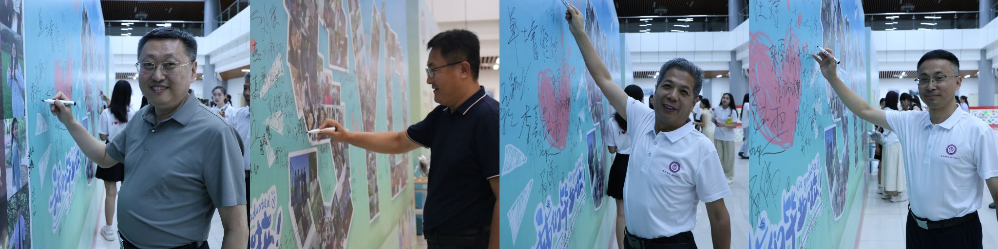 会场外,学院精心设置了签名墙,师生们纷纷上前签名,并合影留念,定格下最美好的大学时光。