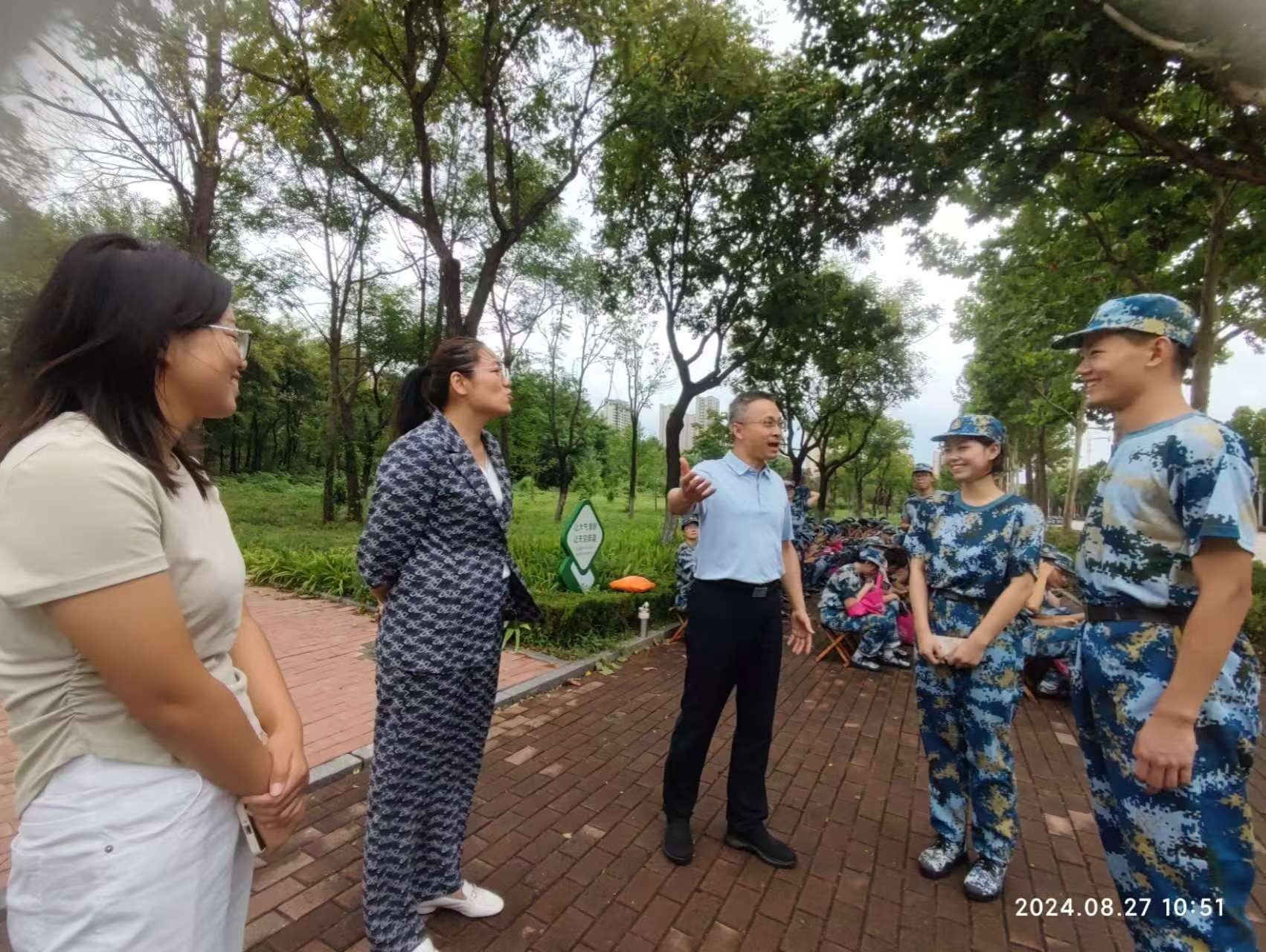 8月27日上午,vwin德赢ac米兰官方网党委书记杜江山、学工办主任董灵芝、团委书记杨苗苗及全体辅导员老师一行走进军训场地,关注德赢官网新生训练情况、思想动态和军训表现,亲切慰问教官和参训学生。