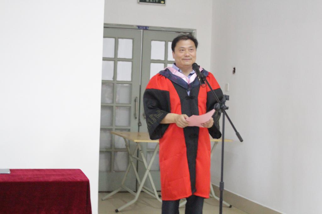 随后,教师代表王滨为即将走向社会的同学们寄语,他向毕业生表达了衷心的祝福,更表达了自己对相处四年的学生的依依不舍。他说,在新的起点上,希望同学们要“穷则独善其身,达则兼济天下”,立业后,多些“为天地立心、为生民立命、为往圣继绝学、为万世开太平”的情怀。大学生,当自己身做起,以点滴之努力推动中华民族之伟大复兴。