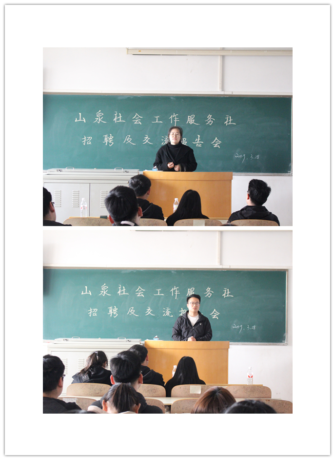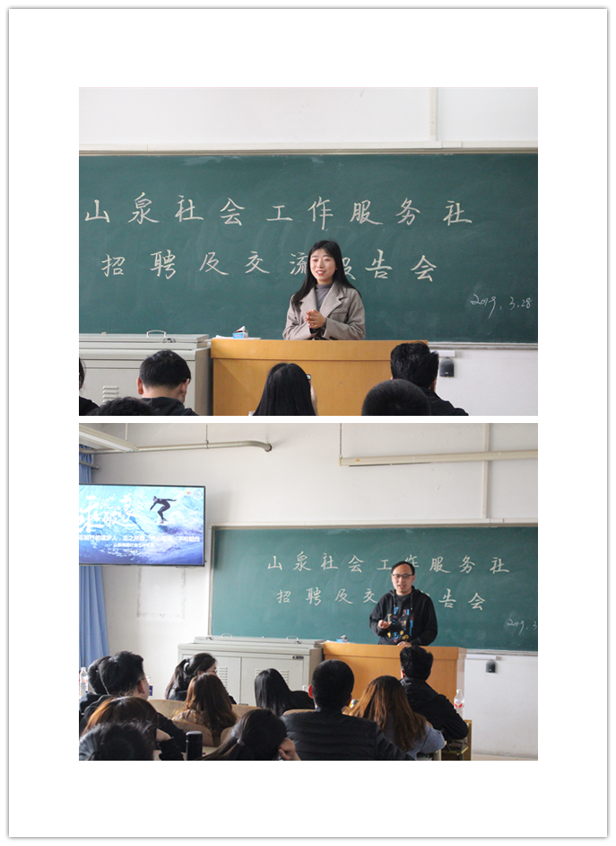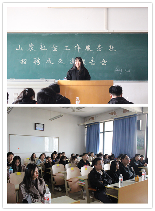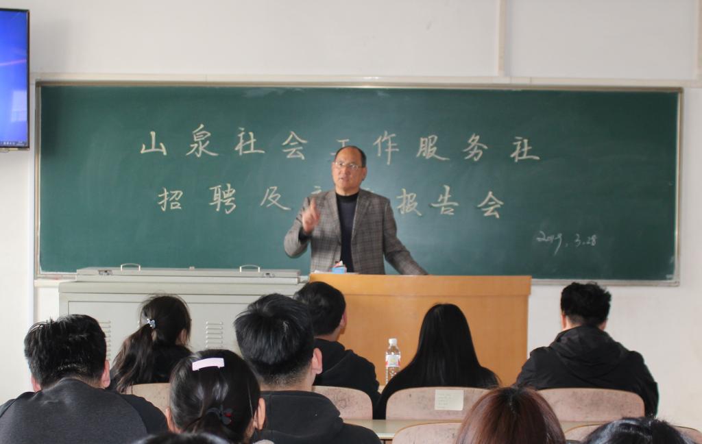 为引导学生做好职业规划、提高专业学习的认同感及社会竞争力,了解更多的社会就业平台,提高毕业生就业率,vwin德赢ac米兰官方网特邀请山泉社会工作服务社总干事李聪聪率队于月3月28日来德赢官网举办“山泉社会工作服务社招聘及交流报告会”。社会工作系主任刘庚常教授和社会工作系各级同学参加了此次交流会。