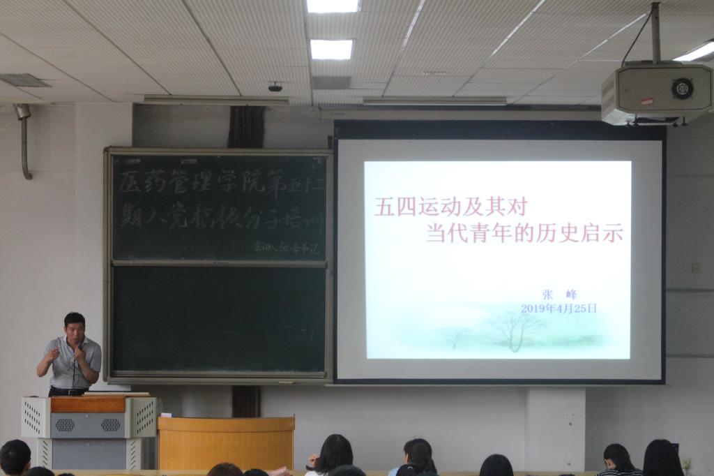 张峰在培训中对全体学员重点强调了举办入党积极分子培训班的重要性,要求入党积极分子要提高认识、明确学习任务,端正学风;端正动机,净化思想;要严格遵守纪律,珍惜学习机会。张峰为同学们详细讲解了党的性质,作了题为《五四运动及其对当代青年的历史启示》的专题报告,他带领同学们回忆了百年前的五四运动,五四运动是一个具有时代意义的历史事件,是中国新民主主义革命的开端也是中华民族伟大复兴的起点,同时张峰书记还教导同学们作为当代青年必须要有忧国忧民的爱国情怀、要有社会责任感、要励志和求真、要认真学习,努力报效祖国。