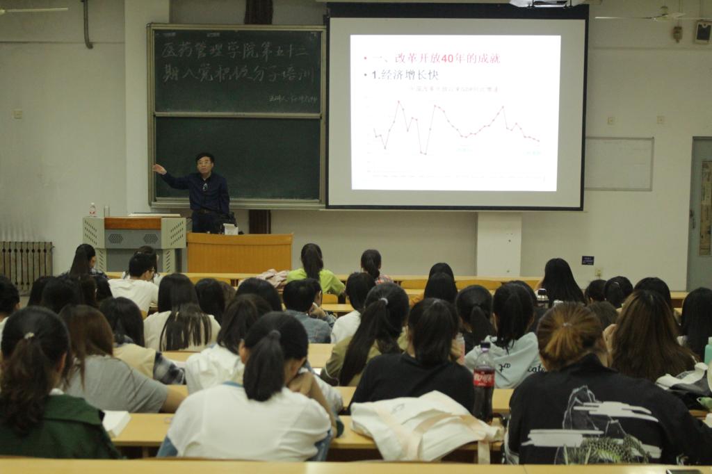 党委副书记王彦为入党积极分子认真讲解了中国共产党的纲领;培训班特别邀请了马克思主义学院任冲教授为入党积极分子作形势与政策报告,任冲围绕改革开放四十周年,重点阐述了改革开放的必要性及其重要性。另外,团总支书记胡华秀、学工办主任王长发、副主任周晓芳、辅导员代勇、张婷婷、张星等分别围绕党的指导思想、党员的权利和义务,围绕“推荐优秀团员作党员发展对象工作”,如何“树立正确的入党动机,以实际行动争取早日入党等方面,为入党积极分子进行了认真的授课。