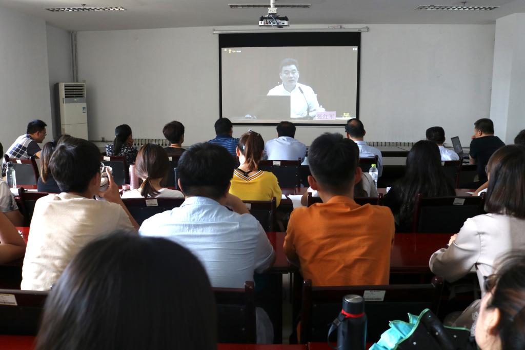 为庆祝中国共产党成立98周年,深入学习贯彻《中国共产党党员教育管理工作条例》,结合开展“不忘初心、牢记使命”主题教育活动,根据省委组织部和学校党委要求,7月1日上午,vwin德赢ac米兰官方网党委组织党员收看“灯塔大课堂”第一课。学院党委所属6个党支部的全体师生党员分别在学院会议室及大教室集中进行收看学习。学院党委书记张峰、院长许彦彬、副书记王彦、副院长苏宝利及科以上干部、党支部书记在学院会议室参加集中收看活动。