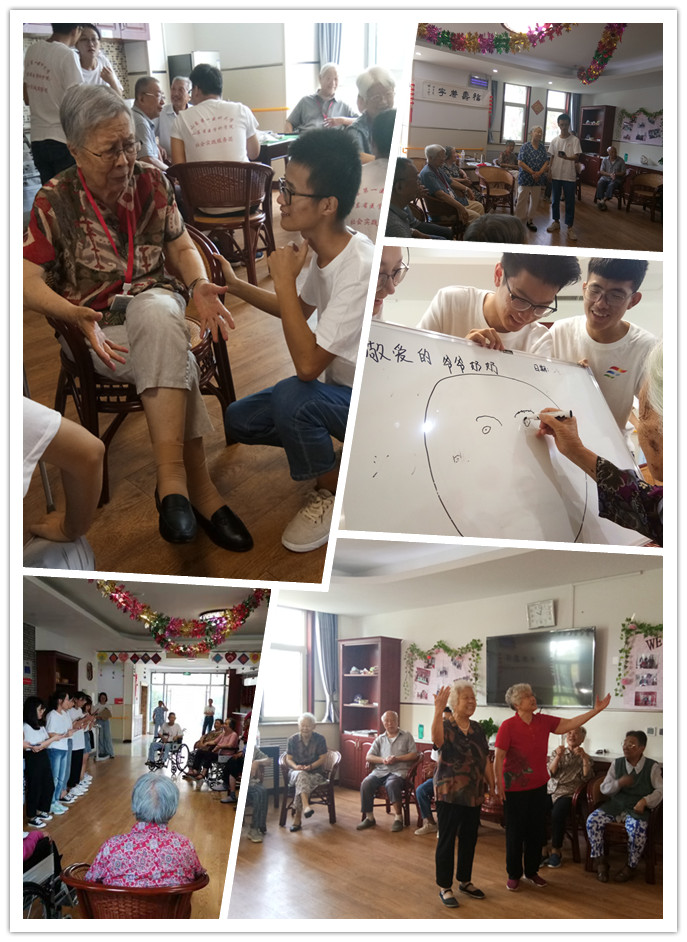 在参观了解机构运行情况之后,团队精心策划的各项活动有序展开。团队成员情绪饱满,全心投入。开场全体大合唱《相亲相爱一家人》迅速拉近了与老人的距离,随后同学们分组与老人进行初步访谈,建立了专业信任的关系。