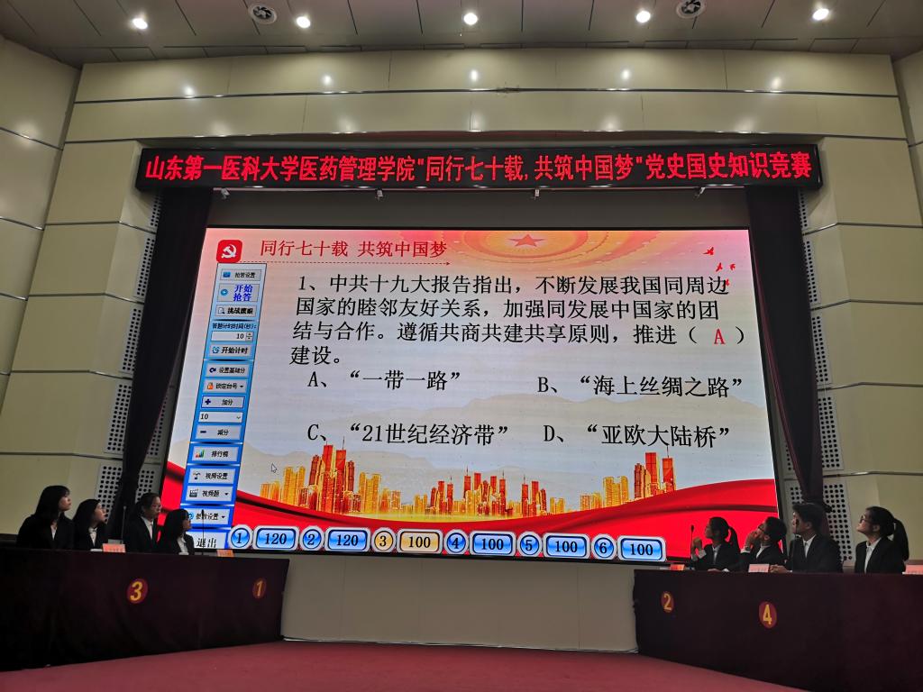 本次活动从十月份开始进行,学院学子积极参与,经过初赛之后,共有六只代表队进入决赛。本次竞赛由一段开场视频带大家领略祖国七十周年的沧桑巨变,紧接着由朗诵协会队员深情地朗诵了《崛起中国》,揭开了本次活动的序幕。本次决赛有“砥砺奋进,继续前进”必答题、“中国速度”抢答题、“强国之旅”选答题和“风险挑战”风险题四个环节。各代表队选手沉着应答,比分交替上升,竞争激烈,获得了场下观众阵阵掌声。场下互动环节学生们参与积极踊跃,问答自如。随后,一首由歌手倾情演唱的歌曲《我爱你,中国》,表达了vwin德赢ac米兰官方网学子对祖国真挚的热爱。最后,一个小彩蛋采访视频带领观众走进日常生活,让我们感受到祖国70年来的发展给普通百姓生活带来的巨大变化,切实体会到了人民生活的富足。本次活动最终由营专破浪队和人力火星队获得一等奖,公管霹雳队和大有作为社保队获得二等奖,齐心营本队和社工争锋队获得三等奖。