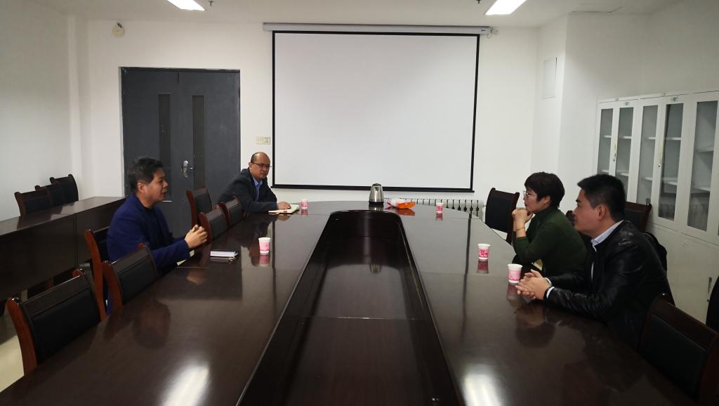 11月18日上午,泰安市时代儒商经贸有限公司董事长张海英、人力资源副总裁杜英明一行到vwin德赢ac米兰官方网交流访问。vwin德赢ac米兰官方网院长陈士福、副院长陈海玉、市场营销教研室崔行武参加了本次座谈会。