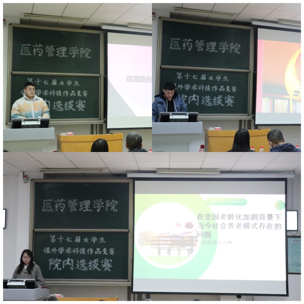 本次活动经过前期宣传发动,共遴选出十篇作品参与本次院内选拔赛,根据比赛规定,每支参赛队伍派出代表上台向老师和同学们介绍作品内容,参赛队伍的作品涉及范围层次广、层面深,作品主题包括“老龄化加剧背景下,当今社会养老模式存在的问题”、“疫情防控形式下社区公共卫生应急措施”等等。在作品PPT展示环节中,各参赛团队从作品的科学性、先进性、理论意义等方面进行了全面阐述,并且对项目作出前景展望。同学们言语简练,逻辑清晰,准备充分,清楚的表达了研究项目的创新性。评委老师根据每组在论述中出现的问题进行了针对性的提问并提出相关建议,帮助同学加深了们对参赛作品的认知和理解。根据专业教师的指导意见,参赛队伍继续修改完善参赛作品,学院将遴选优秀作品参加校级选拔。