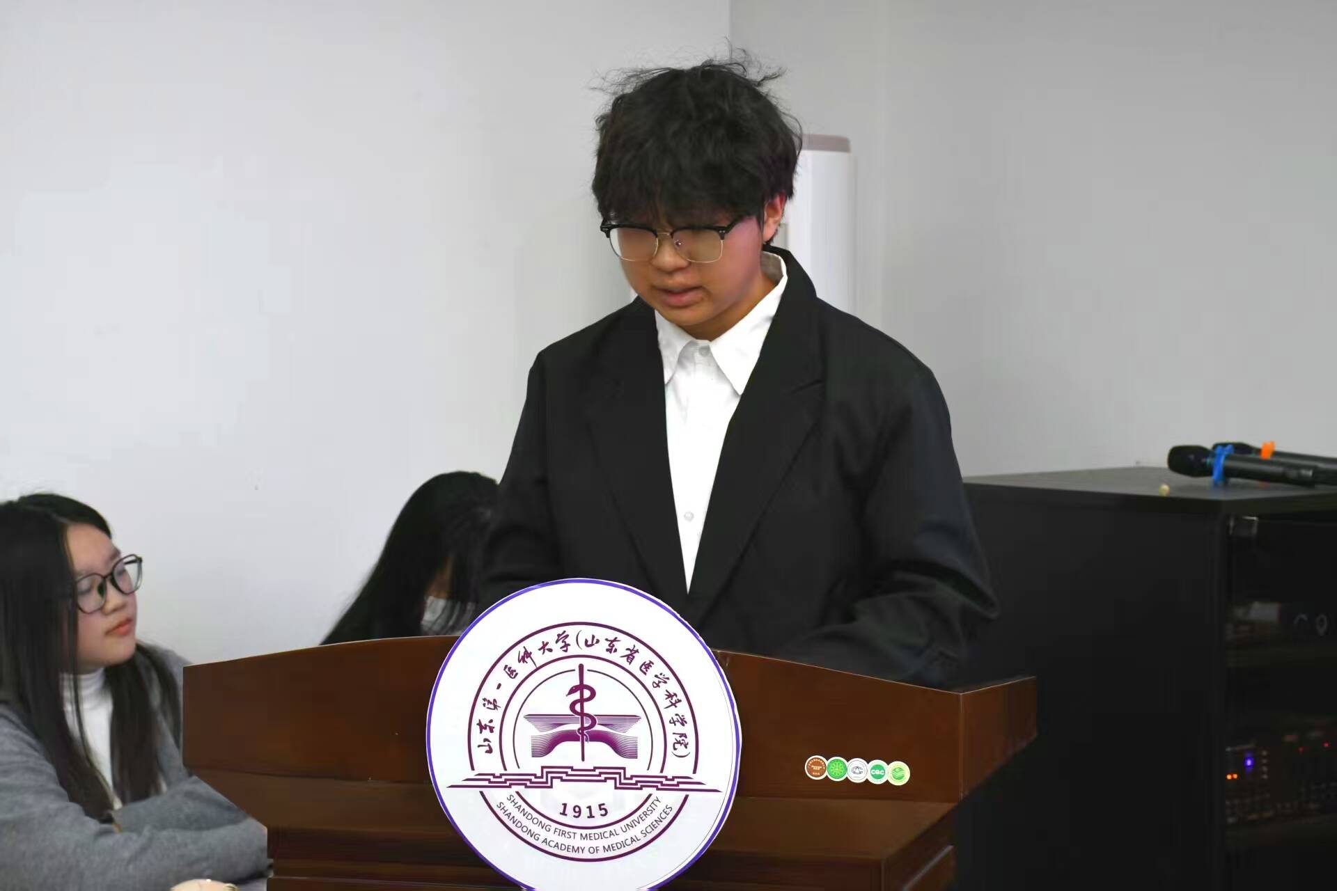 学员代表2024 级人力资源管理本科 1 班韦奕铭同学上台发言。他以饱满的热情分享了自身对党的认识,并呼吁全体学员要戒骄戒躁、认真学习党的理论知识,不断提升自身理论修养,主动发挥先锋模范带头作用,以党员标准严格要求自己,定期向党组织汇报思想、学习与工作情况,以实际行动争取早日加入党组织。