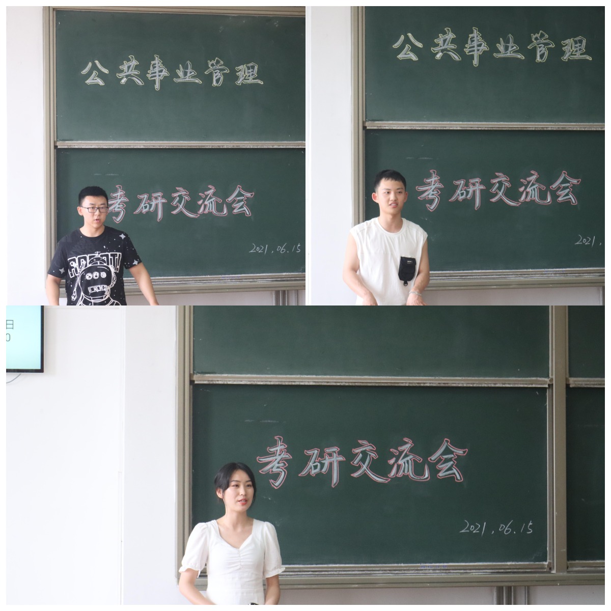 为了进一步加强同学们对研究生入学考试的认识,提高德赢官网学生的考研热情,明确学生考研目标,掌握相关学习技巧,营造良好的学习氛围。vwin德赢ac米兰官方网公共事业管理专业于6月15日下午在教学南楼举办了考研经验分享会,公共事业管理专业系主任于青老师、教师张长丽老师以及张国勇老师参加了此次会议,同时2017级林雨欣、李欣宇等六名大四学生还有公共事业管理专业备战考研的同学参加了本次活动。