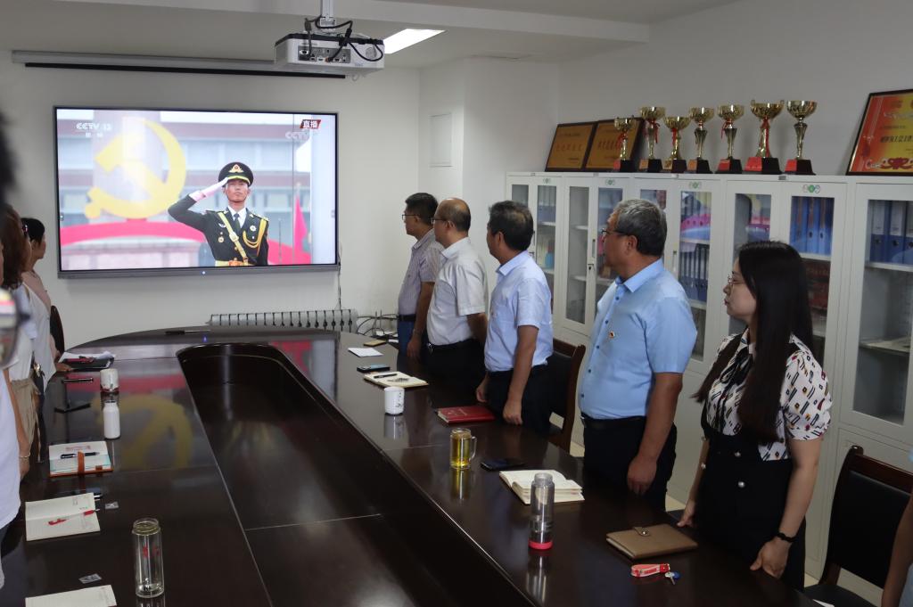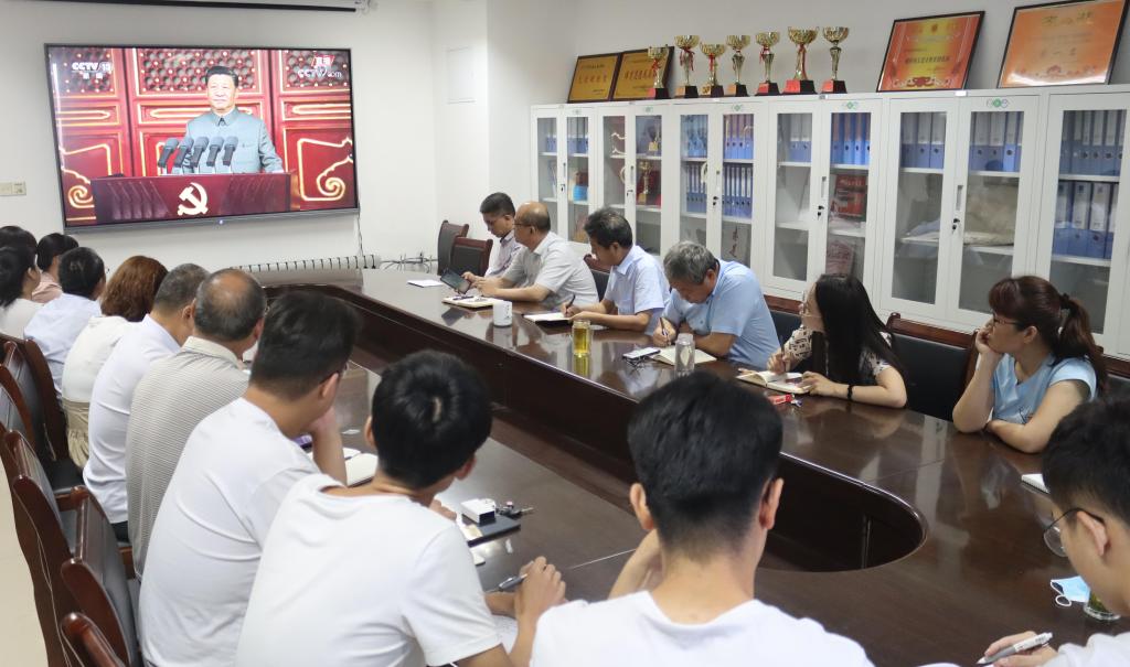 从七点五十分开始,与会人员早早来到学院会议室,做好收看的准备,大家认真看,仔细聆听习近平《在庆祝中国共产党成立100周年大会上的讲话》。