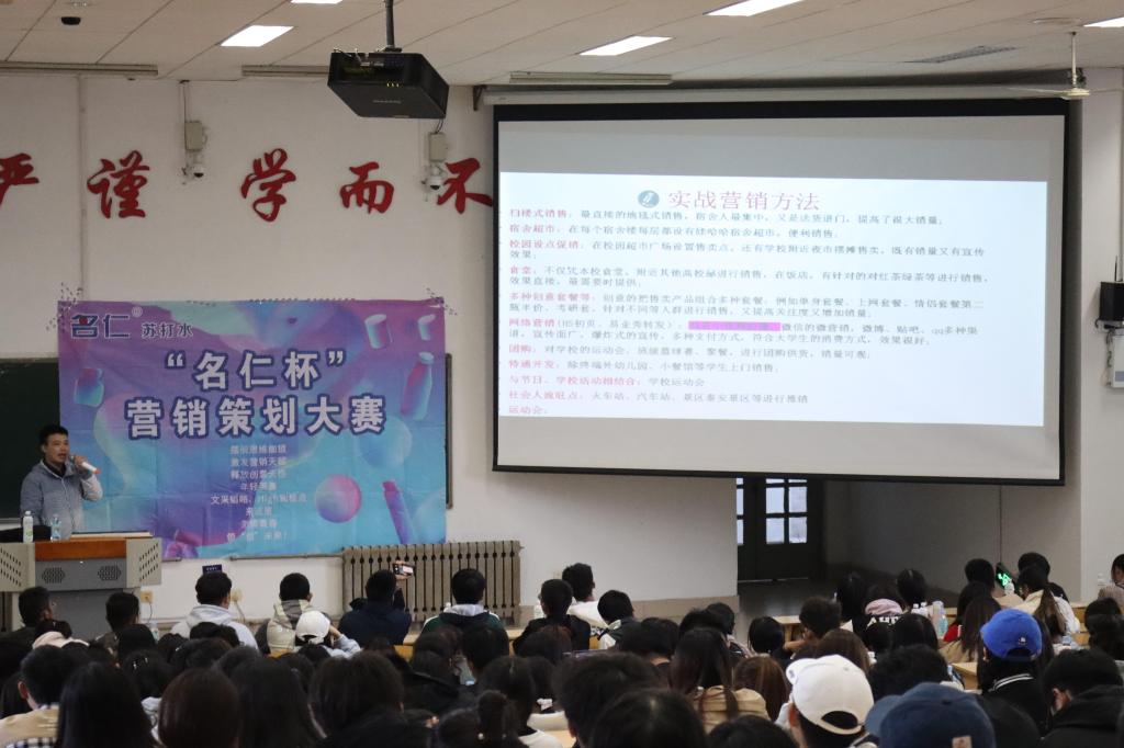 通过本次宣讲活动,使参赛学生对比赛有了更全面的了解,学习到基础的实战营销方法。首先,主讲人从赛事背景出发,带领学生简要了解了娃哈哈集团有限公司的公司概况,同时介绍了“名仁杯”大赛历届的赛事情况。随后,主讲人根据本届比赛的具体情况展开详细说明,着重强调了本次比赛的命题产品及比赛项目,从细节出发,提出了本次比赛的针对性要求,进一步规范了各参赛队伍的比赛方式。最后,主讲人带领参赛学生学习了与本次比赛密切相关的实战营销方法,并根据比赛举办经验向同学们讲述了营销过程中的注意事项,使参赛学生更深入地学习到战略决策技巧,增强了营销能力。