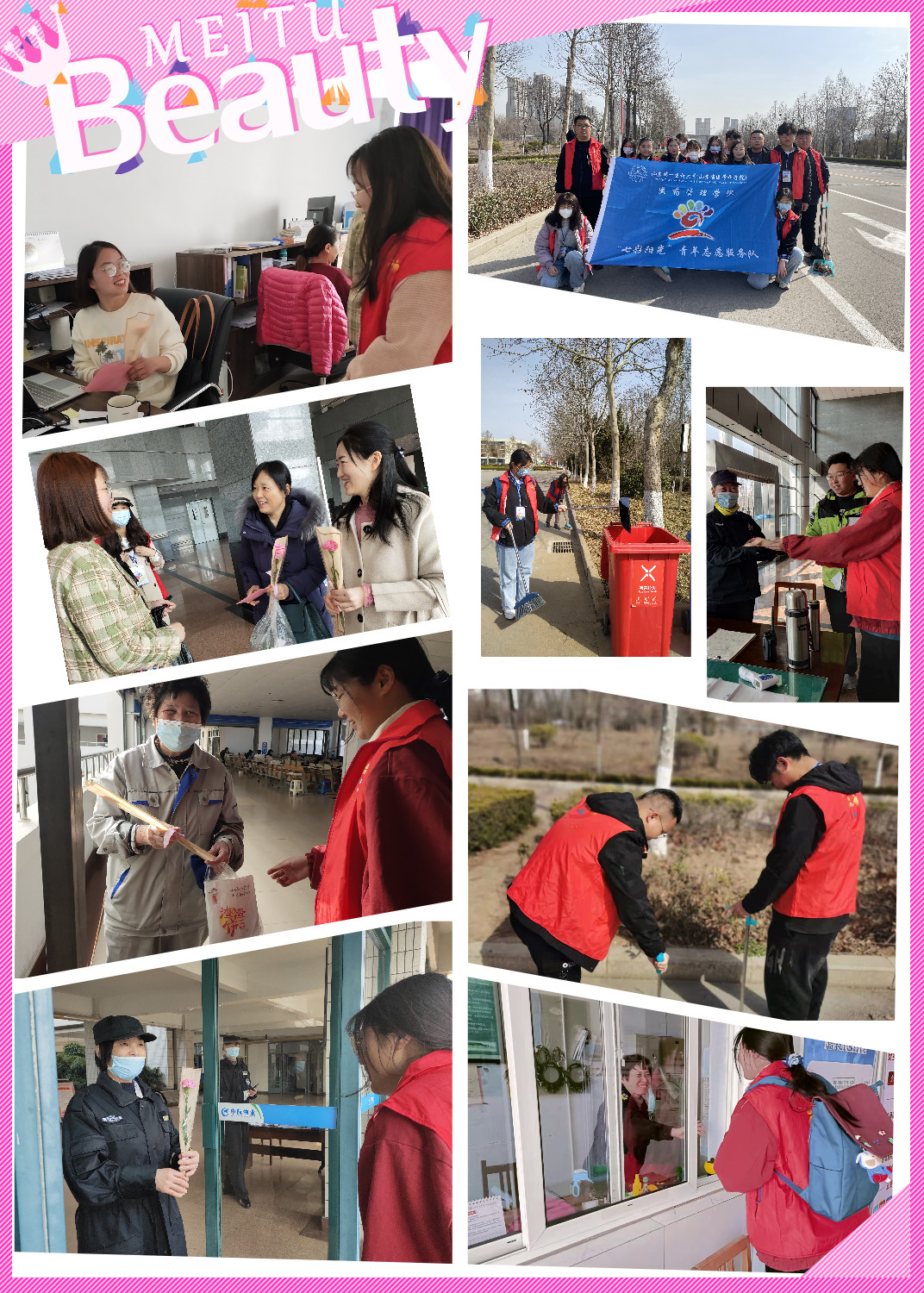 为积极响应团委号召,增强大学生的责任感、荣誉感以及感恩意识,喜迎建团百年,3月8日,vwin德赢ac米兰官方网“七彩阳光”青年志愿服务队组织开展“弘扬奉献精神,致敬女性力量”主题活动。