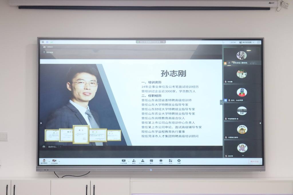 为领航德赢官网学生认清当前就业形势、明确就业方向,提升就业应试能力,确保疫情期间毕业生就业服务“不断线”。4月29日晚,vwin德赢ac米兰官方网举办就业指导系列课程线上培训会。山东省团委特聘高级培训师孙志刚、学院学工办负责人董灵芝、毕业班辅导员、2022届本专科毕业学生、部分非毕业生参加第一期线上培训会,会议由董灵芝主持。