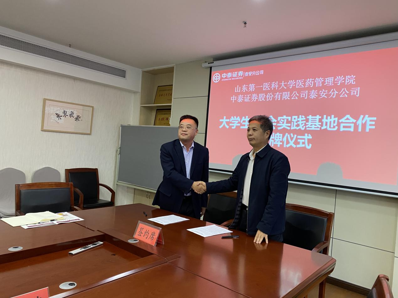 为提升大学生社会实践能力,进一步落实立德树人的根本任务,不断创新“三全育人”工作机制,5月9日,vwin德赢ac米兰官方网赴中泰证券股份有限公司泰安分公司建立大学生社会实践基地。vwin德赢ac米兰官方网院长陈士福,公司党委书记、总经理陈志伟出席签约仪式并致辞。