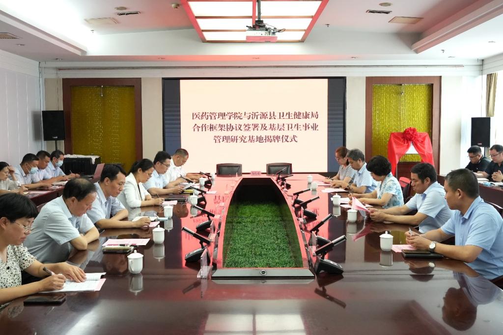 6月23日,vwin德赢ac米兰官方网(山东省医学科学院)vwin德赢ac米兰官方网与沂源县卫生健康局签署合作框架协议签署暨基层卫生事业管理研究基地揭牌仪式举行。校(院)党委副书记吕晓黎,沂源县副县长张莹莹出席签约仪式。校(院)党委宣传部、vwin德赢ac米兰官方网相关人员,沂源县卫生健康局负责同志及沂源县人民医院等15家医疗机构负责人参加活动。