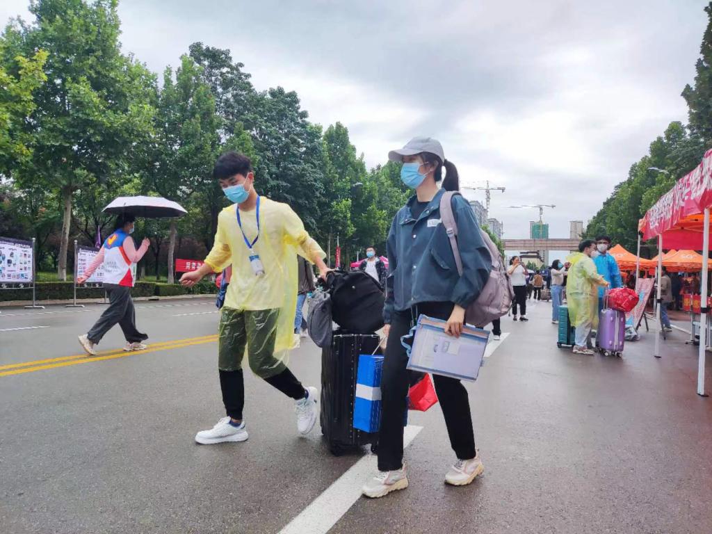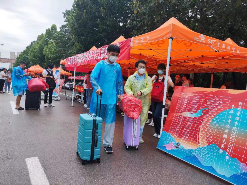 热情似火,以心迎新。虽然天公不作美,连绵的秋雨给新生报到带来了一些麻烦,但是在充分地准备工作下,迎新工作仍然是有序地进行。清晨,由学院学工办全体老师、新生辅导员、学生党员以及学生志愿者组成的迎新队伍早已分别在校外接站点、校内新生报到处等候。七点半开始,新生们陆续从接站点来到到校报到,新生入校时,首先要在东门进行体温检测,行程码、健康码和48h内核酸证明核验,录入人脸信息,核验无误后由迎新志愿者“一对一”陪同完成注册、宿舍分配、领取物资和校园卡办理等事宜。在迎新过程中,老师和志愿者们耐心地解答同学们的疑问,介绍入校注意事项。报到期间,由于雨势变大,考虑到同学们行李较多,被褥易被打湿,任纬兵书记及时联系后勤管理部协调校园巴士协助转运新生行李,用细致、贴心、暖心的服务让每一位新生都感受到了vwin德赢ac米兰官方网这个大家庭的温暖。