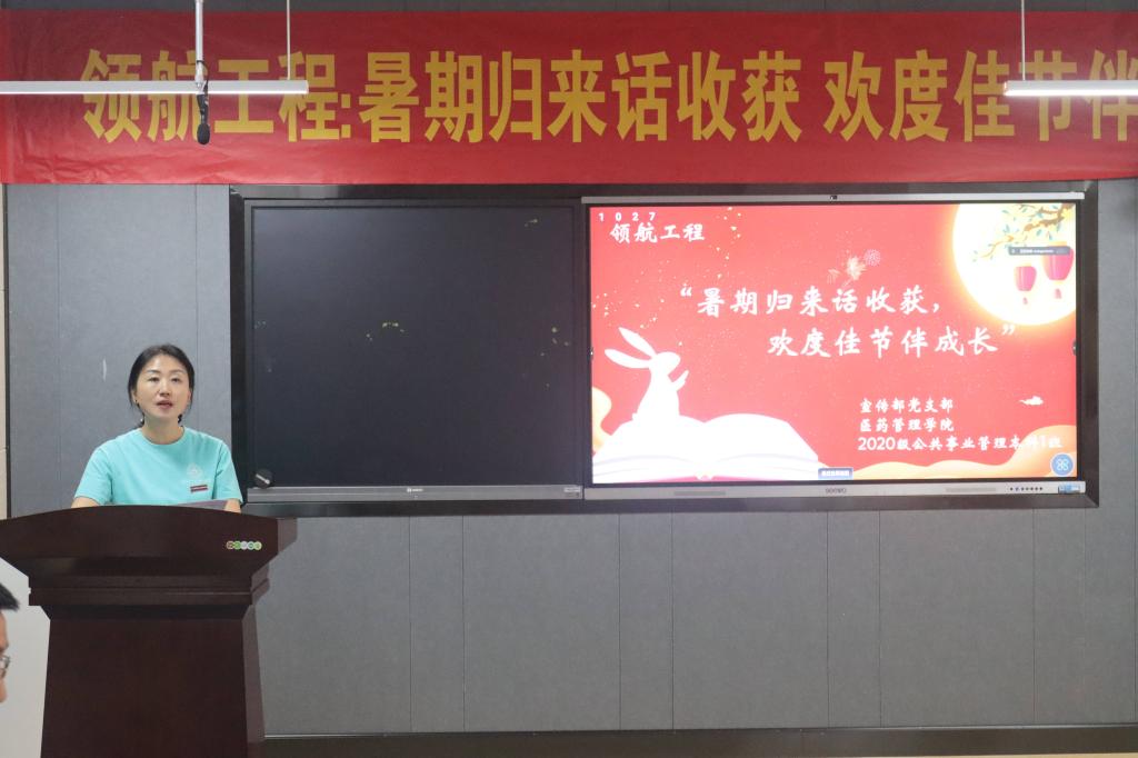 9月10日,在第38个教师节和中秋节同临之日,宣传部党支部与vwin德赢ac米兰官方网2020级公共事业管理本科1班联合举办“领航工程”系列活动之“暑期归来话收获,欢度佳节伴成长”活动,师生共庆双节,分享暑期社会实践感悟,领航青春,砥砺前行,以优异成绩迎接党的二十大胜利召开。校(院)党委副书记吕晓黎参加活动并深情寄语大学生。