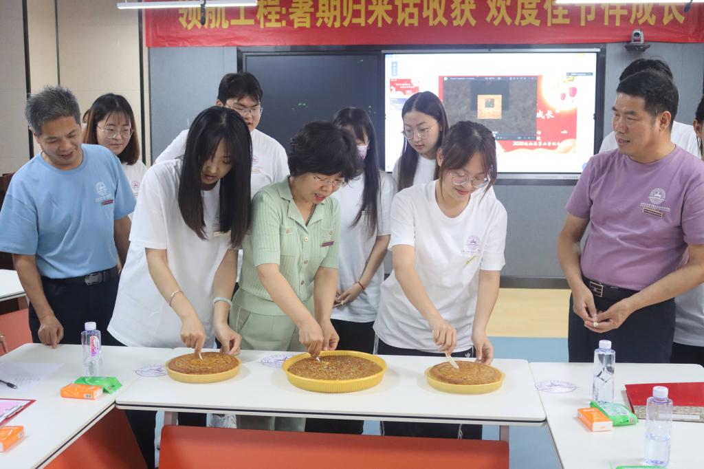 伴随着悠扬的音乐,吕晓黎与同学们一起分切月饼,共庆双节,共同表达节日的祝福,现场气氛融洽,充满温情。