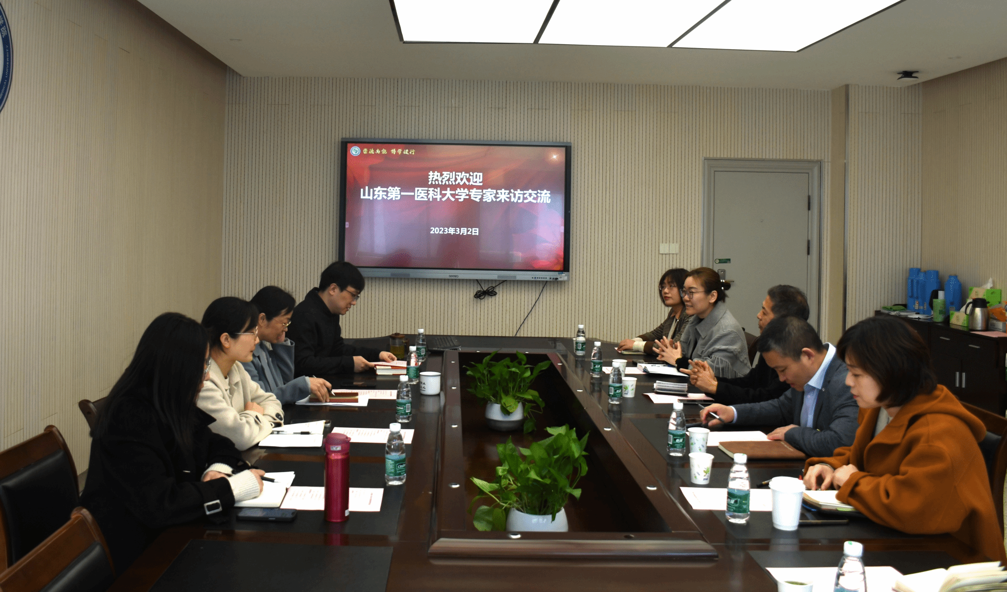 陈士福介绍了山一大vwin德赢ac米兰官方网的办学历史、办学理念、管理模式等情况,希望进一步加强与医政学院交流合作力度,丰富交流形式,拓宽vwin德赢ac米兰官方网专业建设与教学改革思路,并诚挚邀请南京医科大学医政学院相关领导专家到山一大进行学术交流。与会人员就人才培养、实习就业、学科规划、硕士点建设等事项进行了深入探讨和交流。