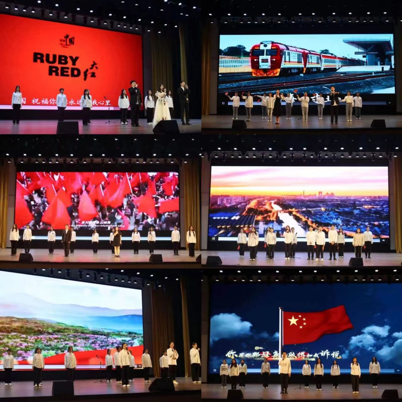 齐唱红歌,奏响青春的美妙乐章,豪情满怀,歌颂祖国的繁荣富强。同学们在饱含深情的合唱中,感悟青年学子的爱国主义热情;在嘹亮的红歌里,汲取红色力量。晚会表演在杨馥毓同学带来的歌曲《这世界那么多人》中完美谢幕。