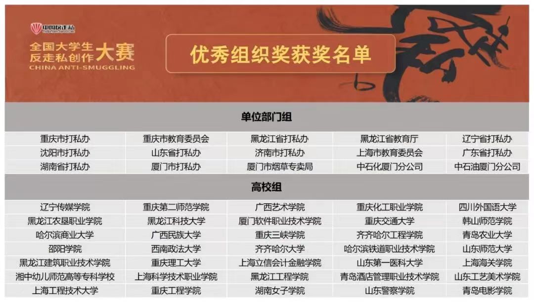 此次大赛由全国打击走私综合治理办公室指导,全国反走私综合治理调查研究中心举办,大赛主题为“全民反走私,你我齐参与”,活动过程中德赢官网学生积极组队参与,在学院老师的指导下创作出了许多主题鲜明的反走私视频作品。成绩的取得,不仅展现了德赢官网学生的实力与风采,更体现了德赢官网教学团队的智慧与力量,是德赢官网师资队伍建设工作取得的又一成果。