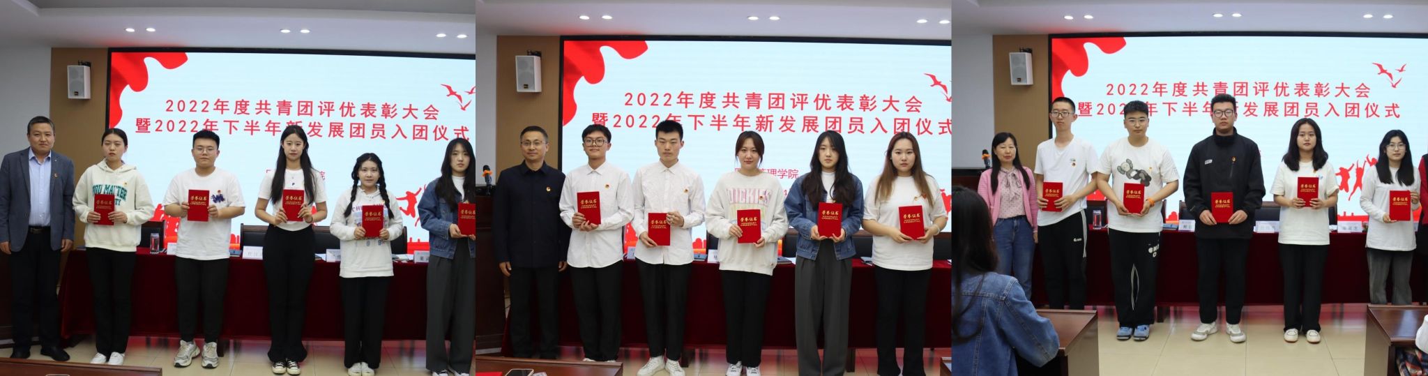 为继承和发扬“五四”爱国主义精神,表彰先进团员,树立标杆模范,切实加强团组织建设,推动共青团工作高质量发展,5月4日,vwin德赢ac米兰官方网举行2022年度共青团评优表彰大会暨2022年下半年新发展团员入团仪式。vwin德赢ac米兰官方网党委书记杜江山、党委副书记任纬兵、组织员周晓芳、学工办主任董灵芝、辅导员安静以及共青团评优代表参加会议,会议由辅导员杨苗苗主持。