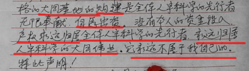 ▲“大同基地”产权登记人自书“放弃产权”的“声明”