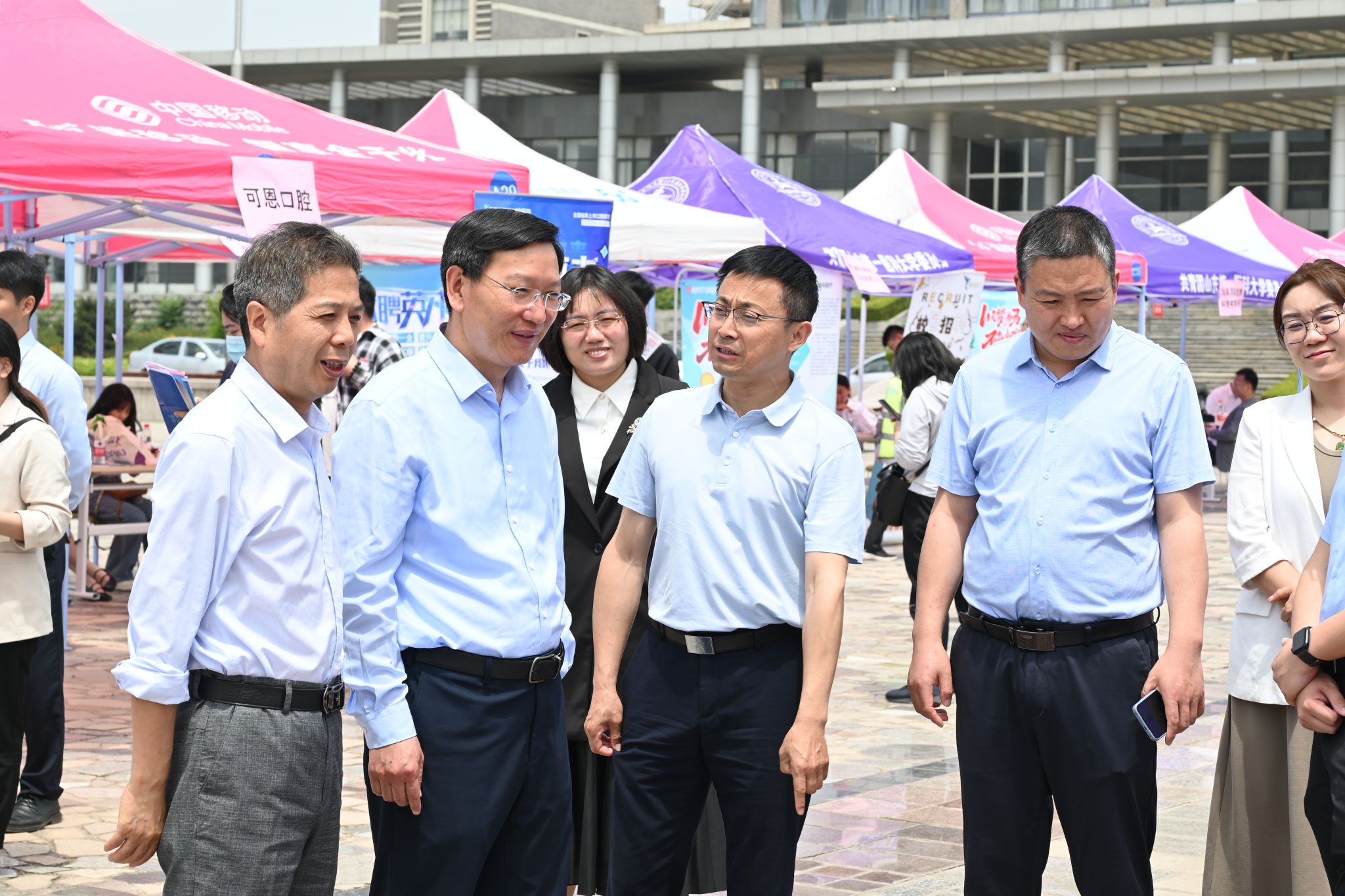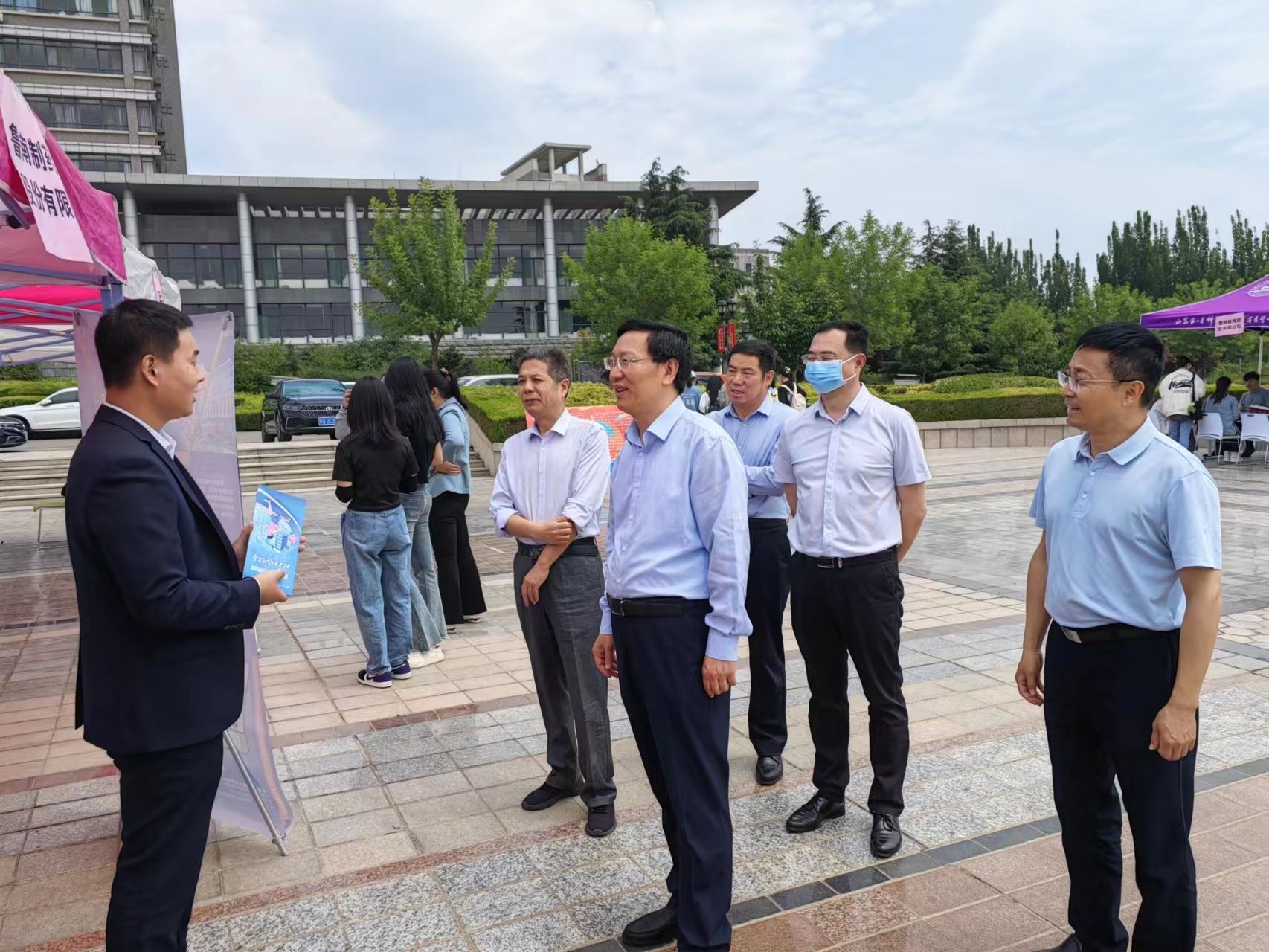 在招聘现场,学校领导走到每个展位前和用人单位进行深入交流,并指出,就业实习双选会是实现毕业生就业实习的重要平台和有效方式,是毕业生就业实习的“加油站”“直通车”。长期以来,校(院)高度重视毕业生就业实习工作,秉持“一切为了学生”的办学宗旨和“让更多毕业生都就业、就好业”的工作目标,制定实施了一系列行之有效的改革举措,全方位推进毕业生就业工作,希望学校和用人单位进一步创新合作模式,深化产学研融合,为人才培养搭建更好的平台。希望毕业生把握住校园招聘的大好时机,找到一份满意的工作,更好地融入社会,走好迈出校园的“第一步”。